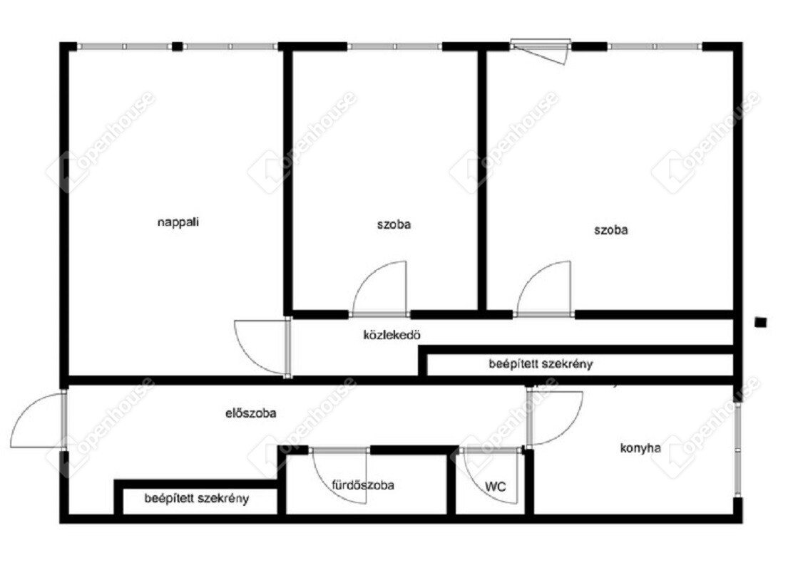 - A lakásban egy nappali, kettő szoba, konyha, közlekedő, előszoba, fürdőszoba, WC külön helységben található.