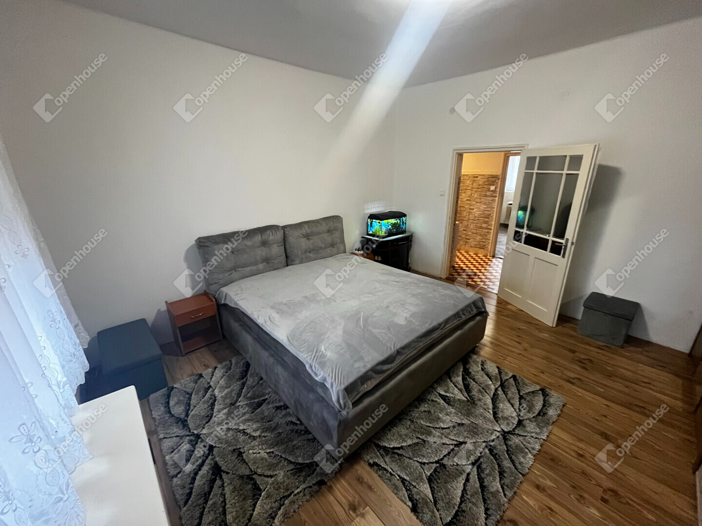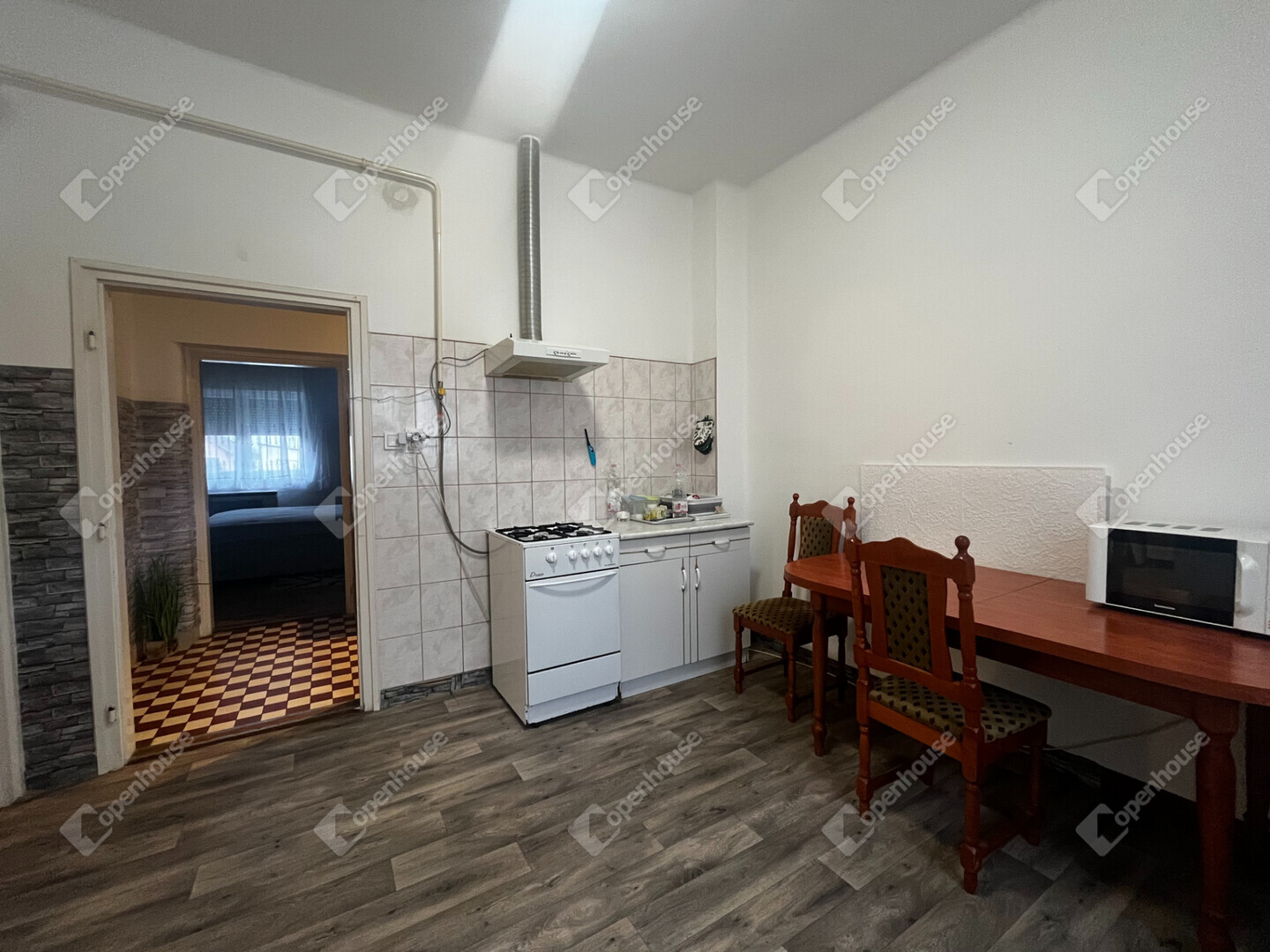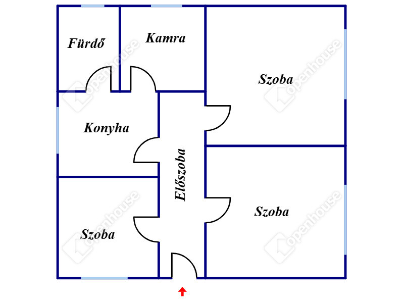 - 3 külön nyíló szoba, egy konyha, egy kamra, és egy fürdőszoba található benne,