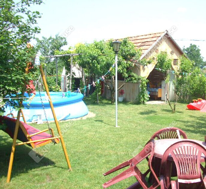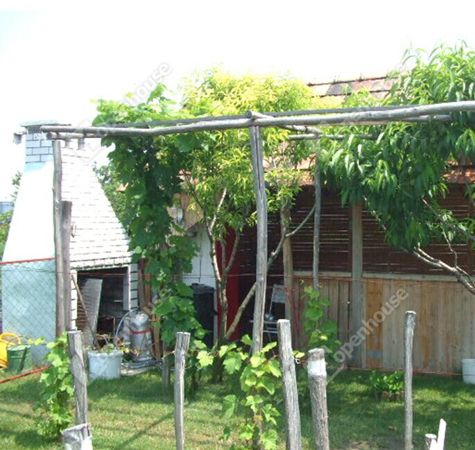 A telek 2/3-a körbekerített, hátul gyümölcsöskert.