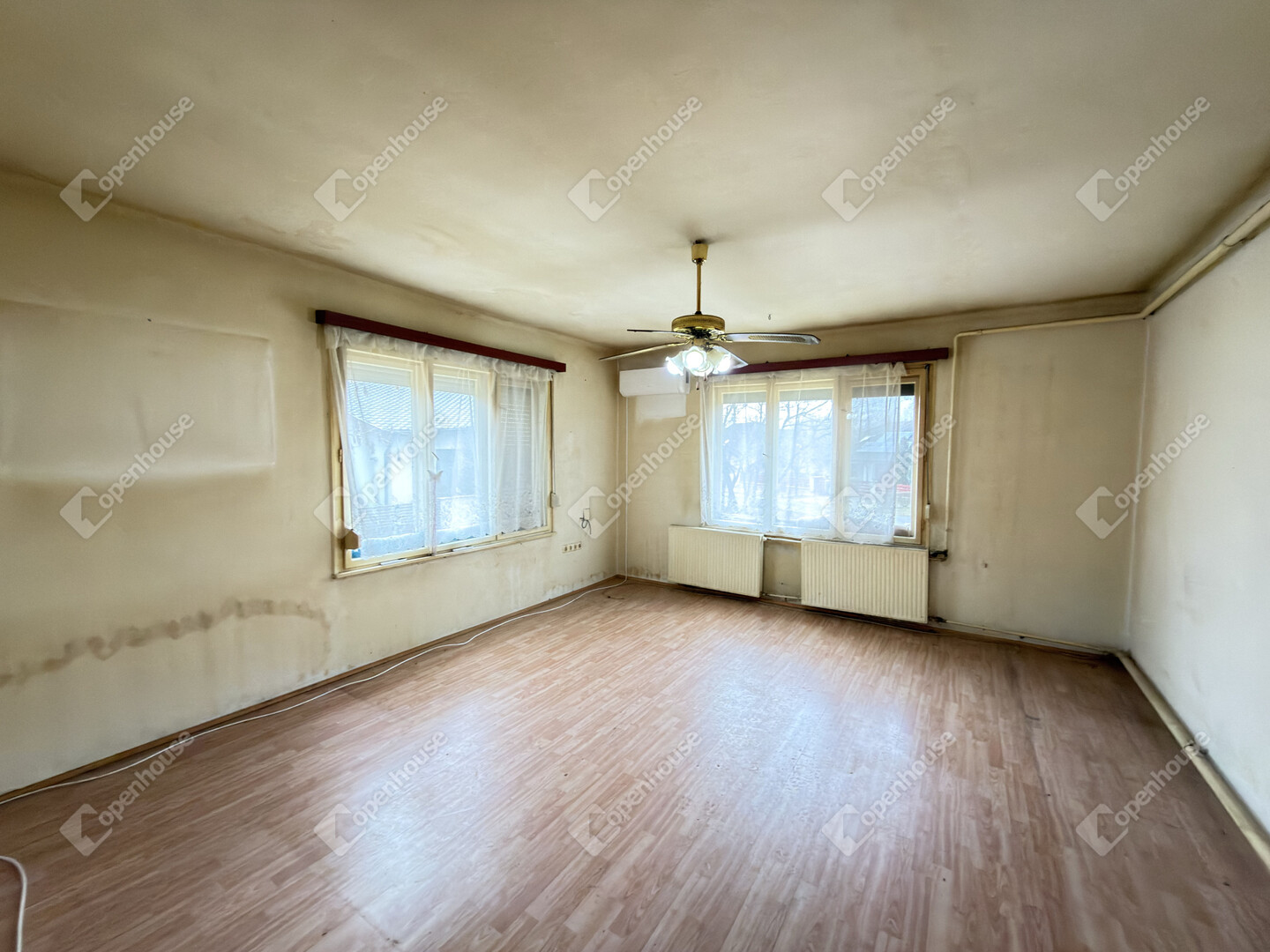 Kis forgalmú utcában egy 573 nm-es saroktelken áll ez a 91 nm-es ,1970- ben épült ingatlan A helységek kiváló elosztása végett egy kényelmes otthont lehet varázsolni belőle egy kis törődéssel. Az udvar rendezett, és hangulatos, könnyen karbantartható.