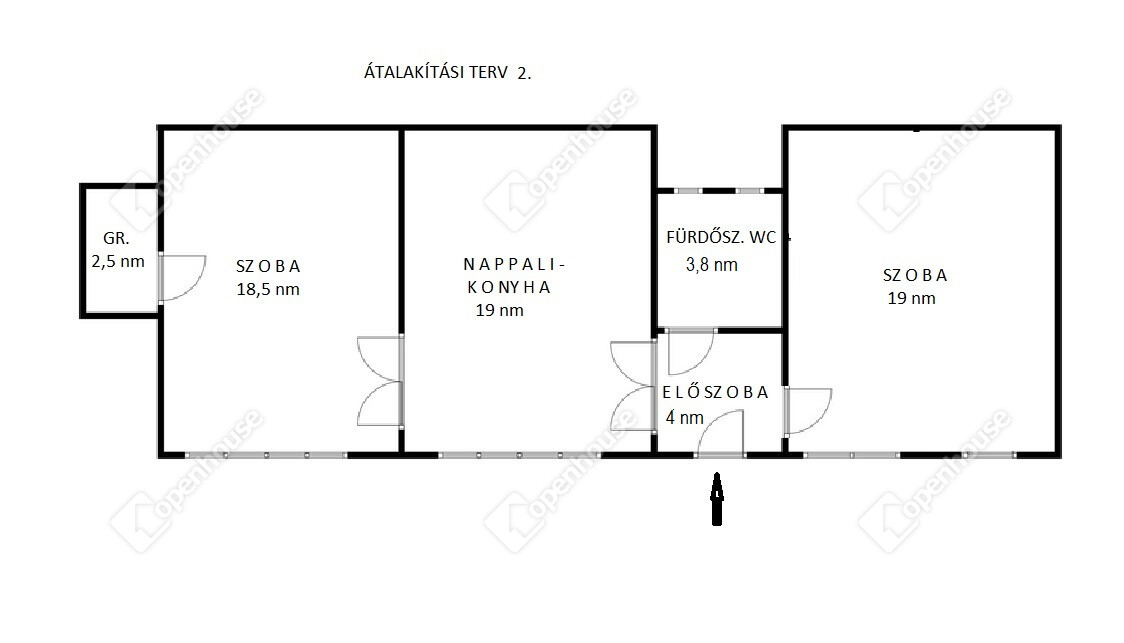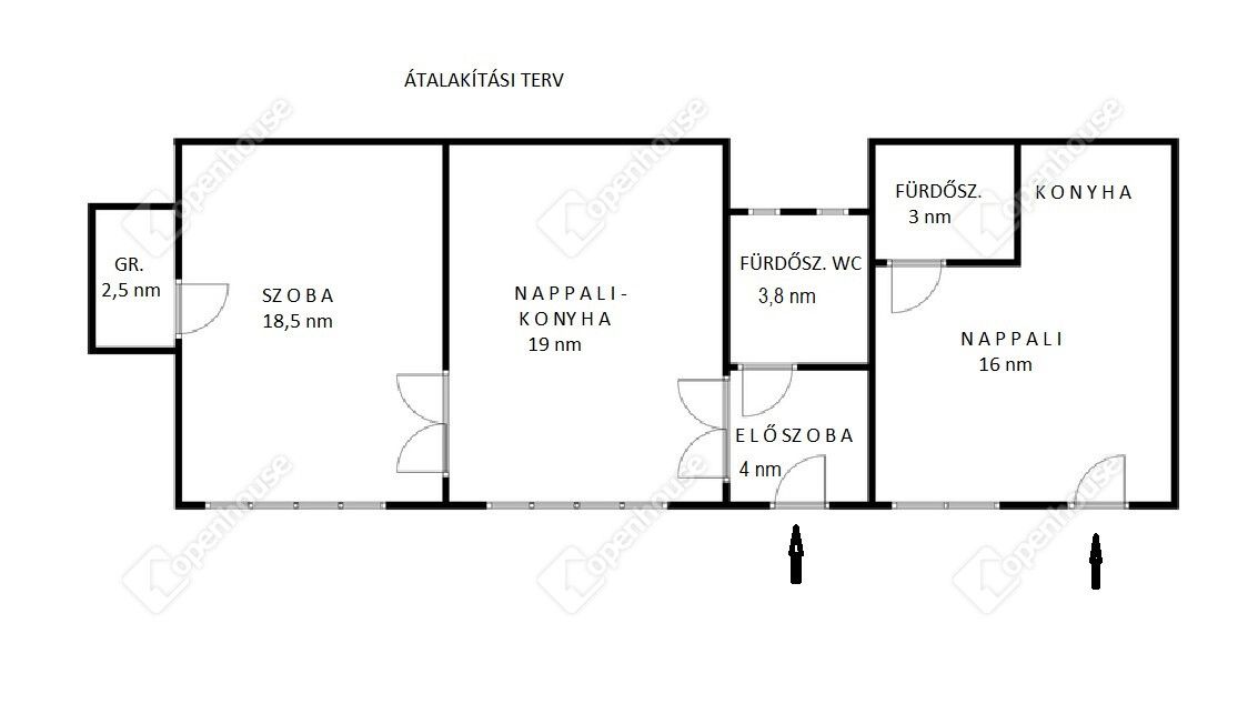 * Eredetileg 2 bejárattal rendelkezett igy 2 önálló lakás kialakítható (átalakítási lehetőségek az alaprajzokon)