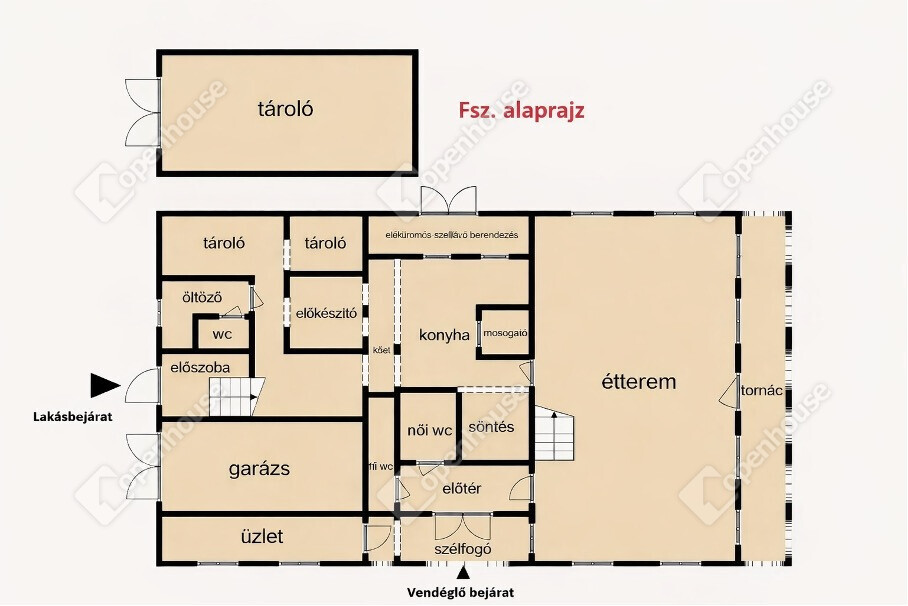 - 40 m²-es külön üzlethelyiség (shop)