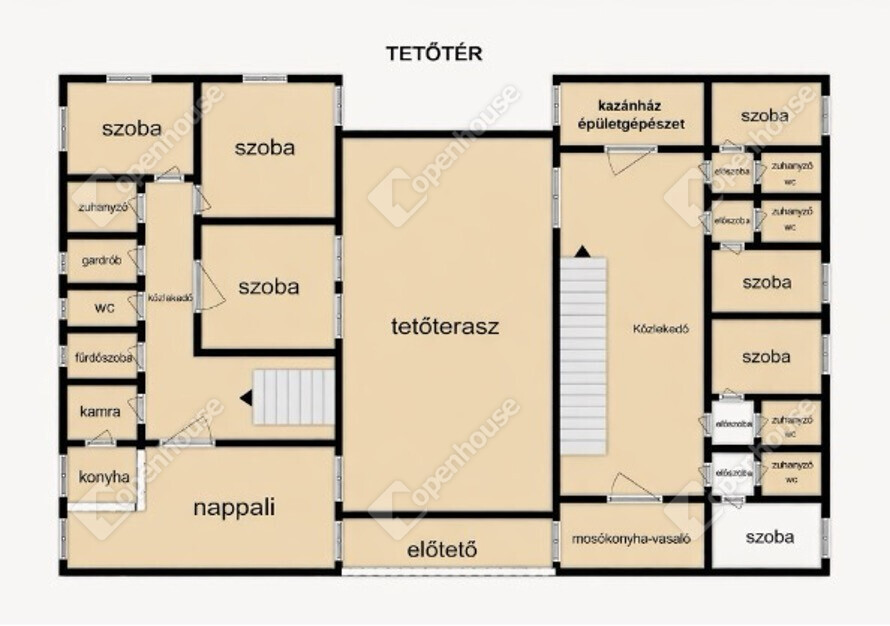 - Tetőtérben 4 db, egyenként kb. 40 m²-es szoba
