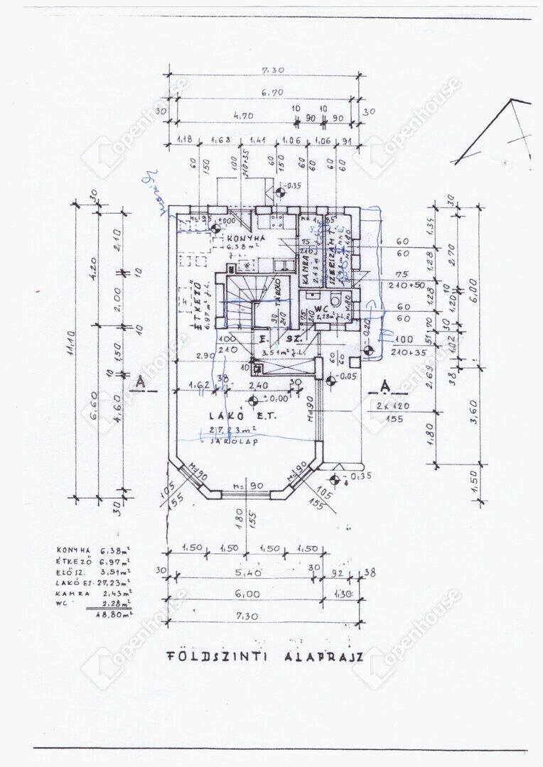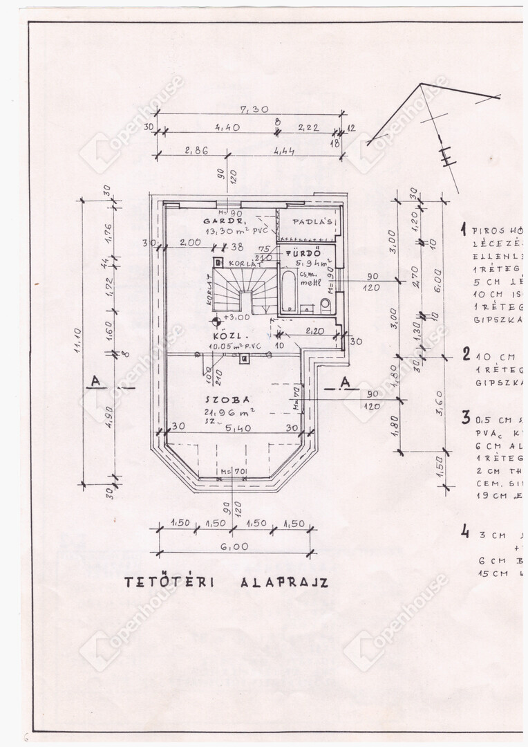 - tetőtérben egy 22 m2-es szoba amit ketté is lehet választani, 13,3 m2-es szoba, fürdő Wc-vel készült.