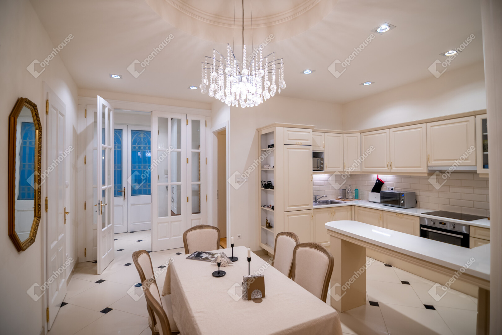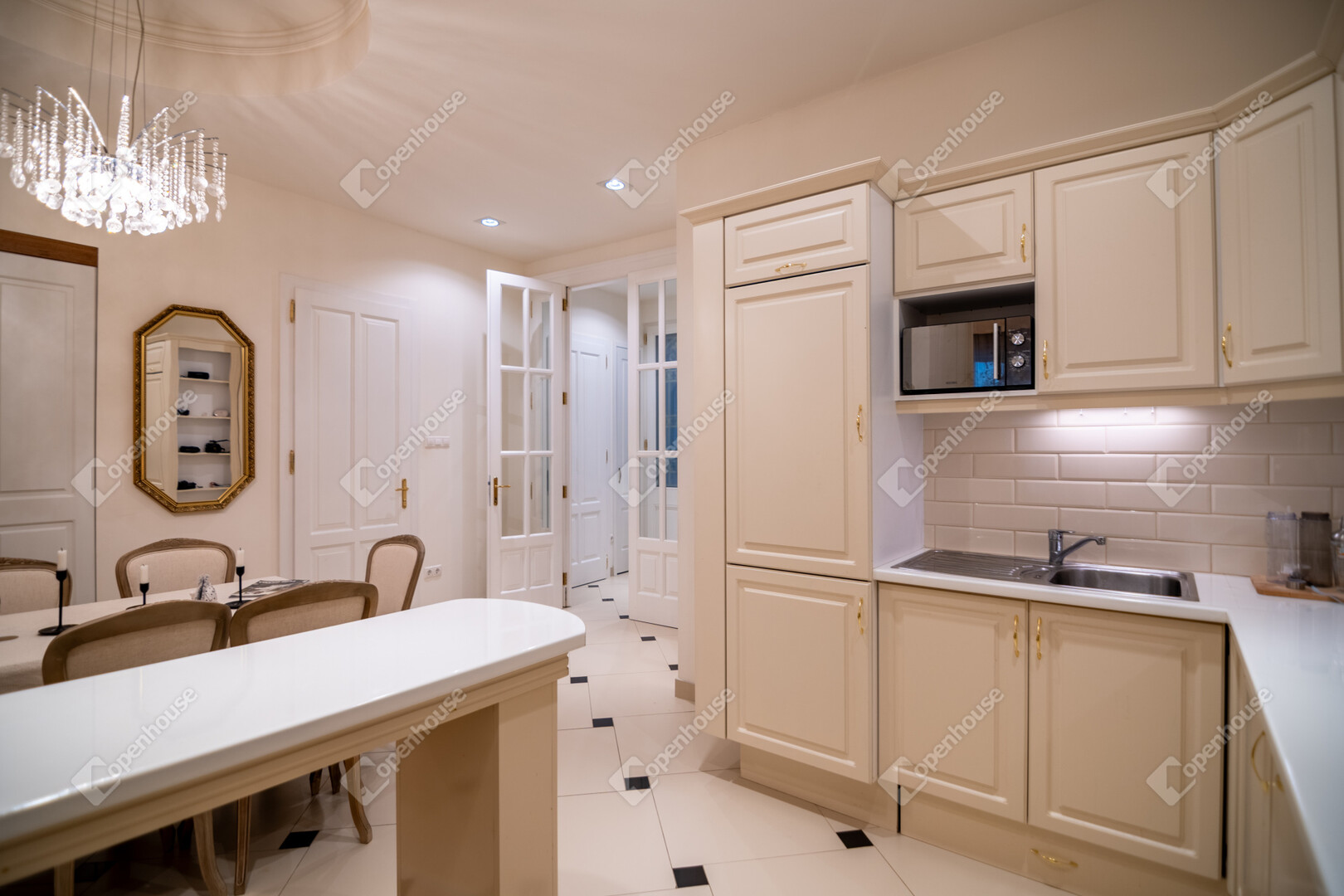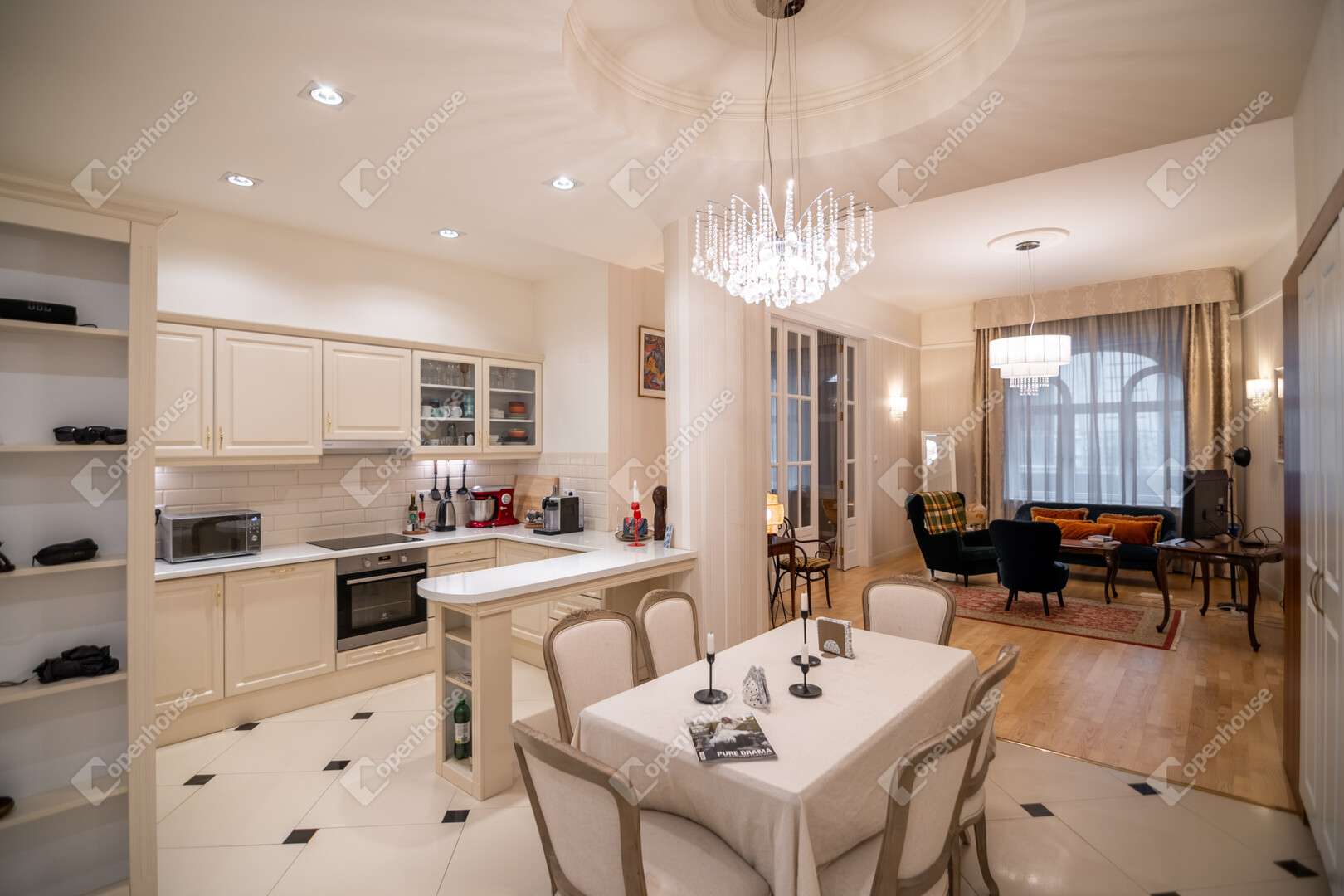 Az I. emeleti, polgári stílusú lakás tágas terekkel és kifinomult arányokkal rendelkezik, megjelenése elegáns és harmonikus. A letisztult színek kifinomult hangulatot és időtálló, nemes összhatást adnak. A szobákban klasszikus parketta, míg a lakás többi részén egységes stílusos járólap található. A délkeleti fekvésű lakásban három szoba közül kettő a Kígyó utcára, egy pedig a csendes belső udvar irányába néz. A konyha és az étkező egy nagyméretű térben kapott helyet, amely közvetlenül kapcsolódik a rendkívül tágas nappalihoz, ideális teret biztosítva a mindennapi élethez. A 20 négyzetméteres hálószobához tartozik egy közel 8 négyzetméteres gardrób is mely tolóajtókkal leválasztható a lakótértől. A második hálószoba a lakás északnyugati felében található és abban is helyet kapott egy beépített gardrób szekrény.