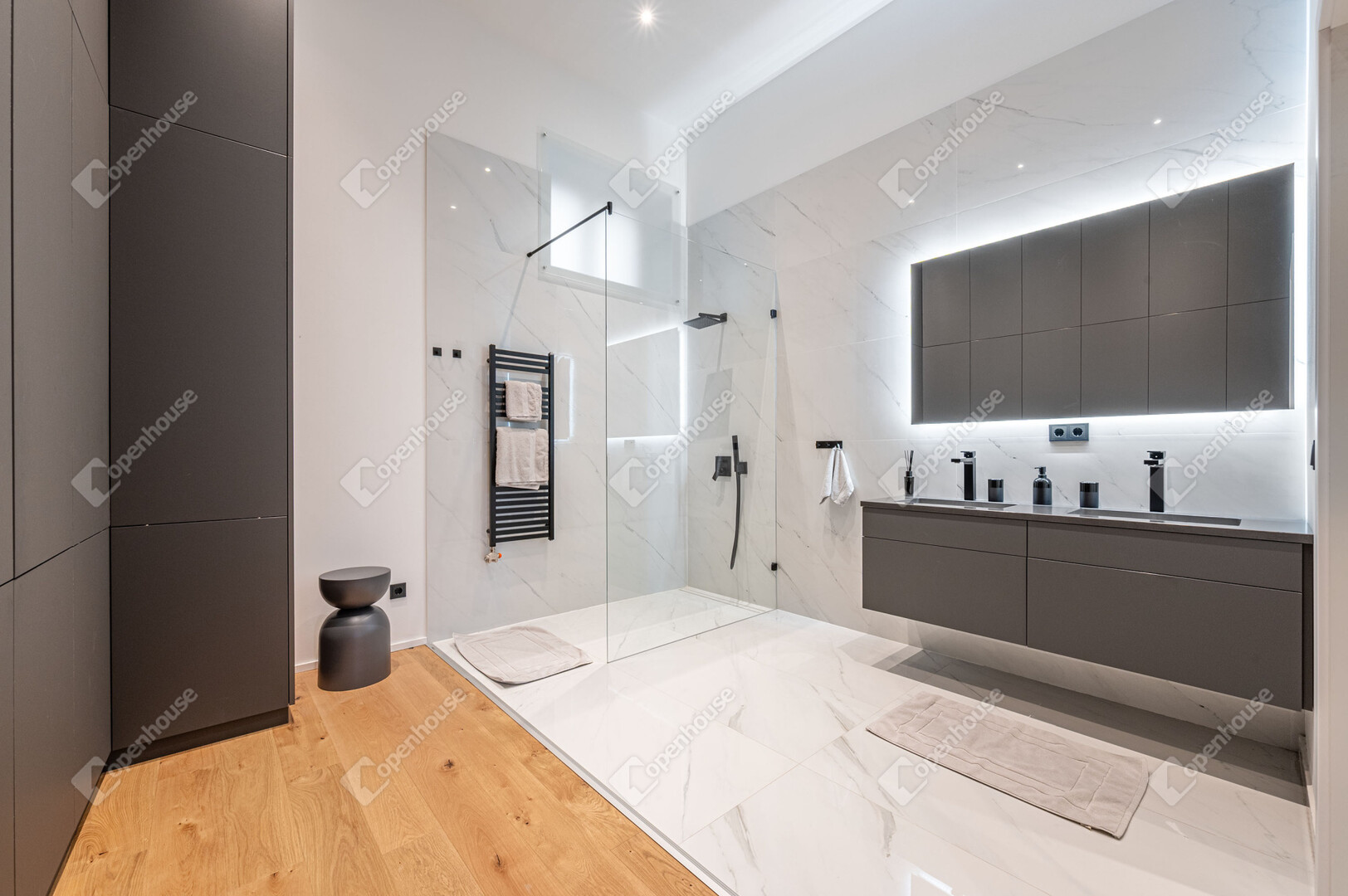 A logikus alaprajz végigvezeti a lakást: a közösségi terek elkülönülnek a privát zónáktól, mégis kapcsolatban maradnak egymással. A hálószobák visszafogottabb tónusúak, csendesek, alkalmasak pihenésre, munkára vagy hosszabb távú használatra is.