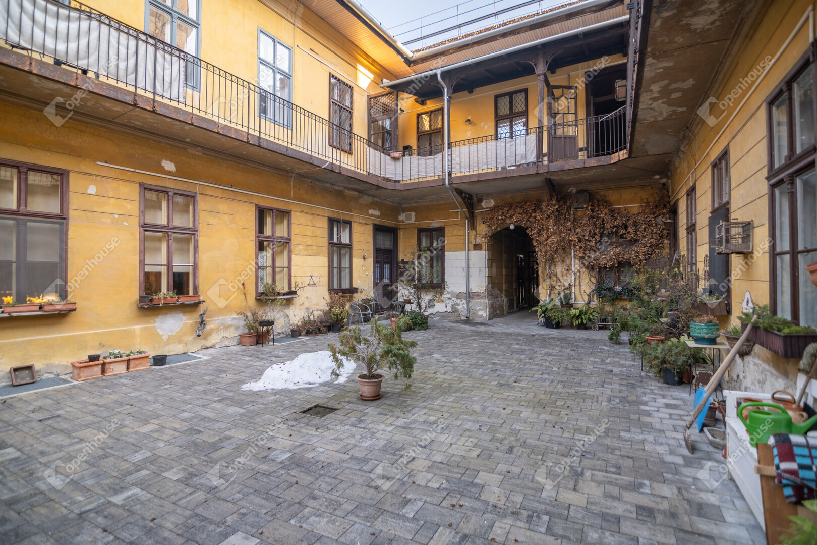 A lakás rendkívül csendes, ablakai a belső udvarra és részben a ház zöld kertjére néznek. A lakás a folyosó végén helyezkedik el, így nincs átjárás előtte, ez a rész akár teraszként is használható.