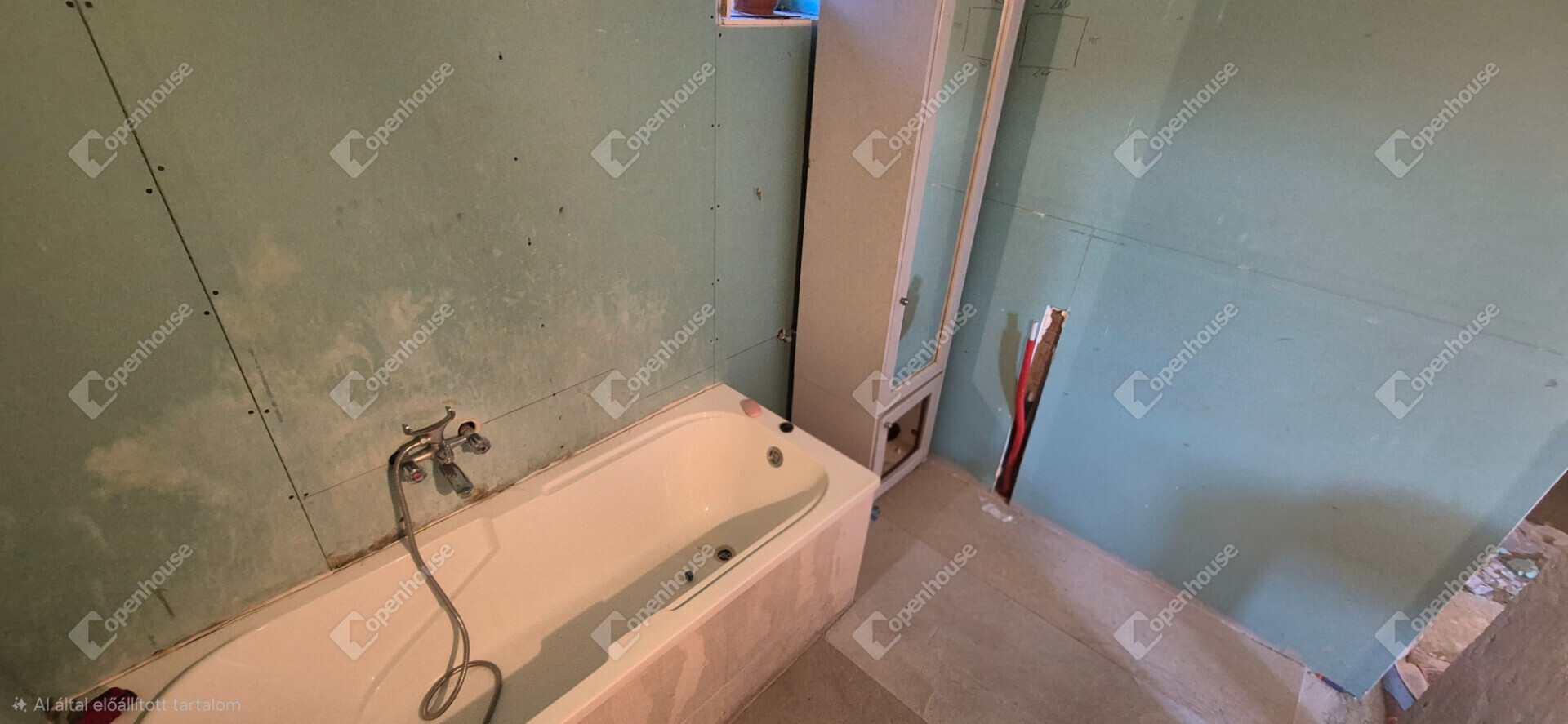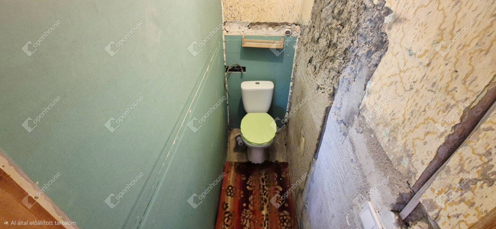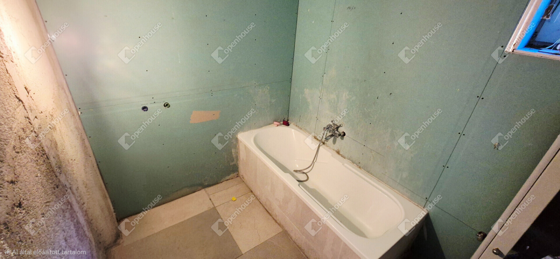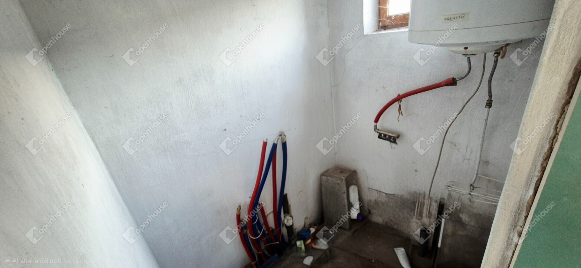 A konyhából ajtó vezet a hátsó tornácra, ahol akár terasz is kialakítható. A gázkazán helye és a lapradiátoros fűtés csövezése kiépített, befejezése az új tulajdonosra vár. A fürdő és WC burkolása szintén hátralévő feladat. Jelenleg kályhával fűthető, a gázcsonk a telken belül található.