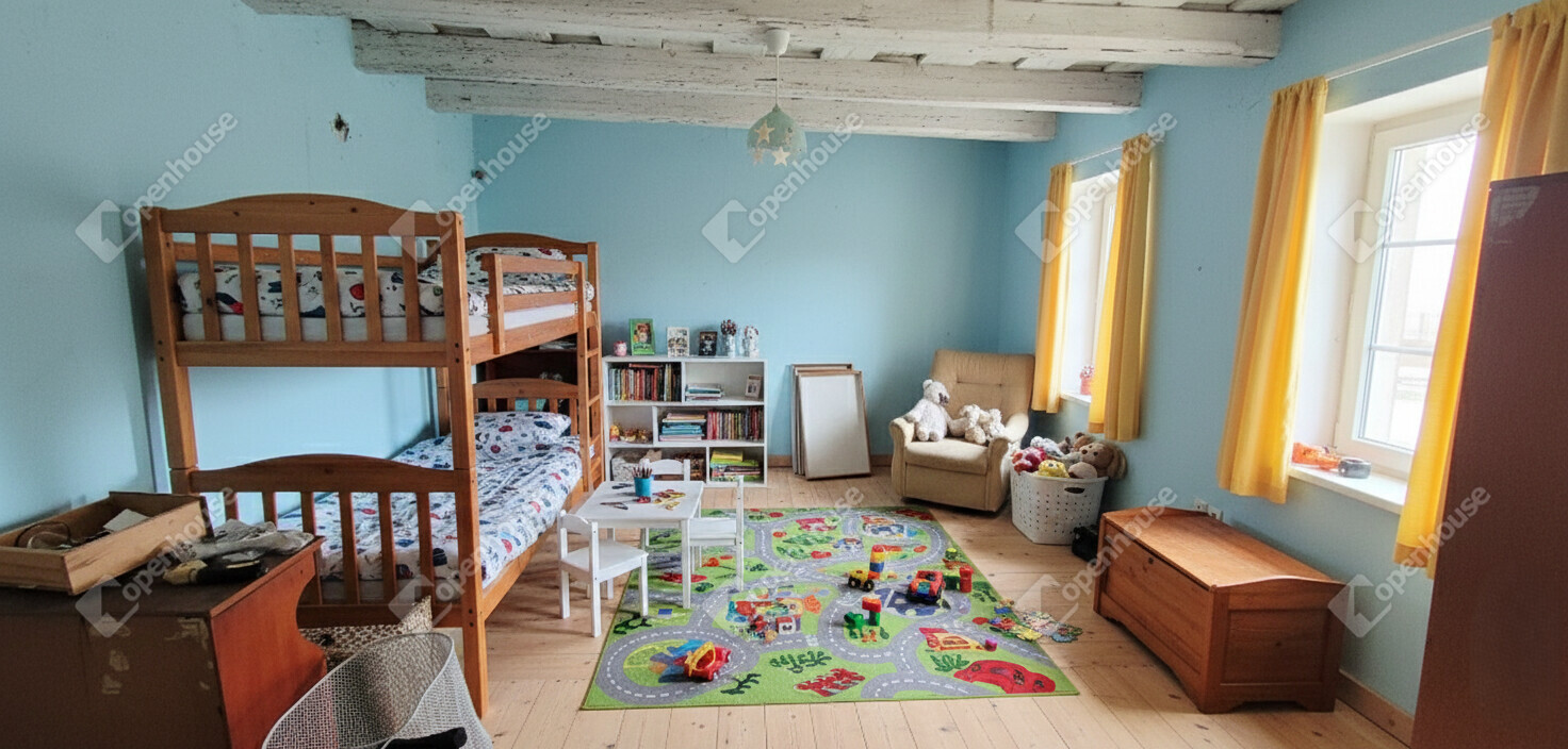 Eladásra kínálunk egy 120 m²-es, 3 szobás családi házat 1116 m²-es telken. A felújítás jelentős része már elkészült: új villamos hálózat, műanyag nyílászárók, kialakított konyha–étkező nappalival, látványos fa gerendás mennyezet a szobákban, ahol a padló betonozásra és burkolásra vár.