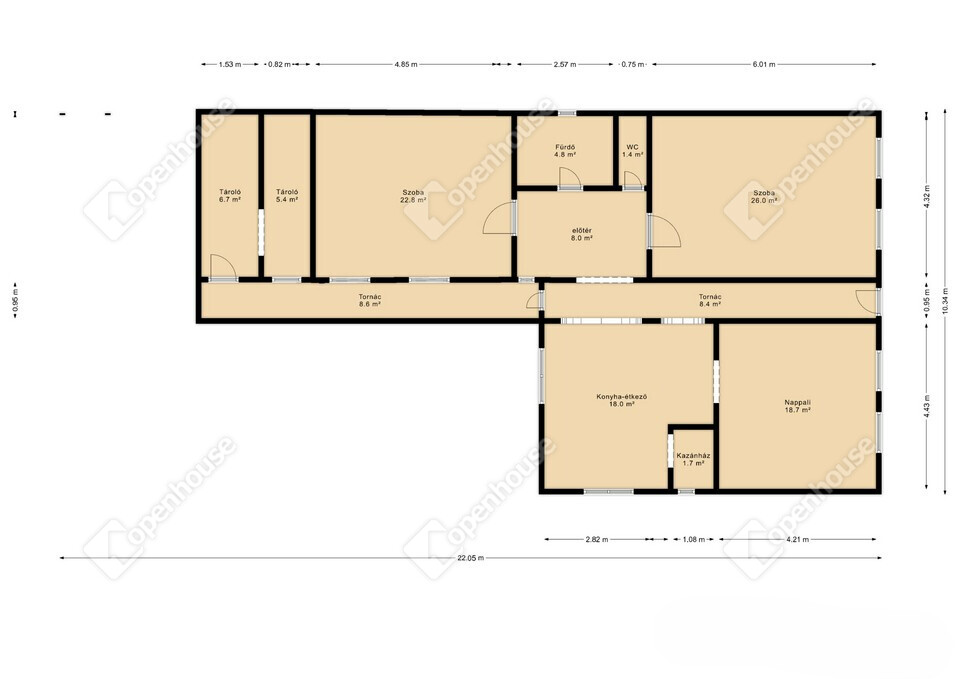 | Amerikai konyha | 18.00 m2 | Laminált padló |