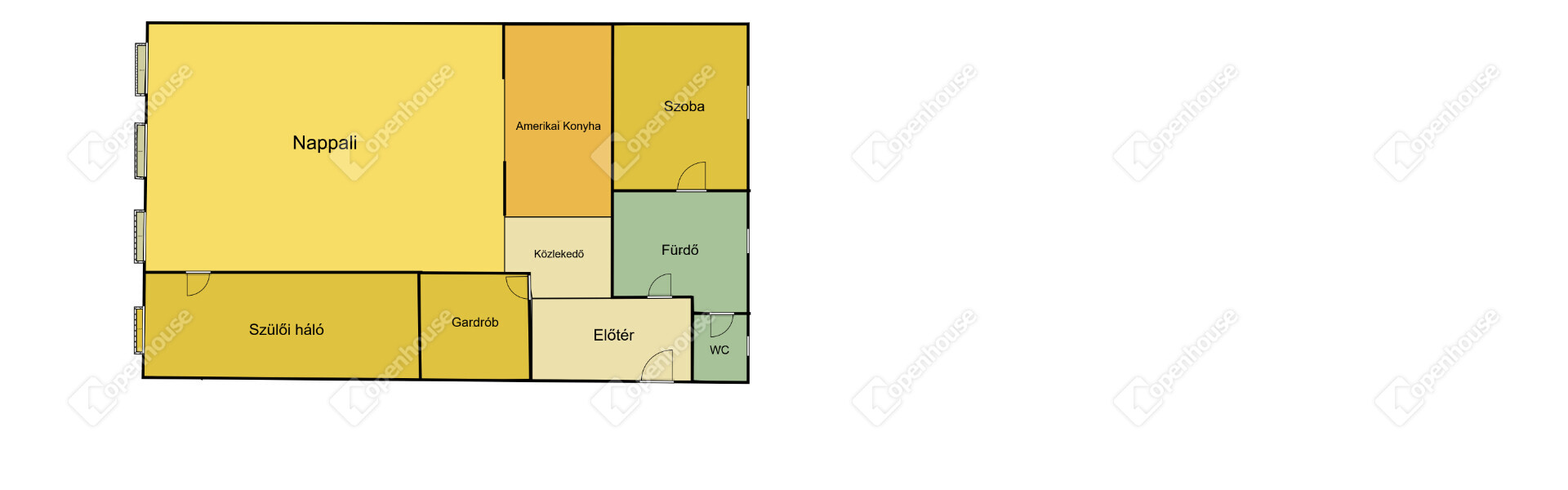 | Amerikai konyha | 43.00 m2 | Járólap |