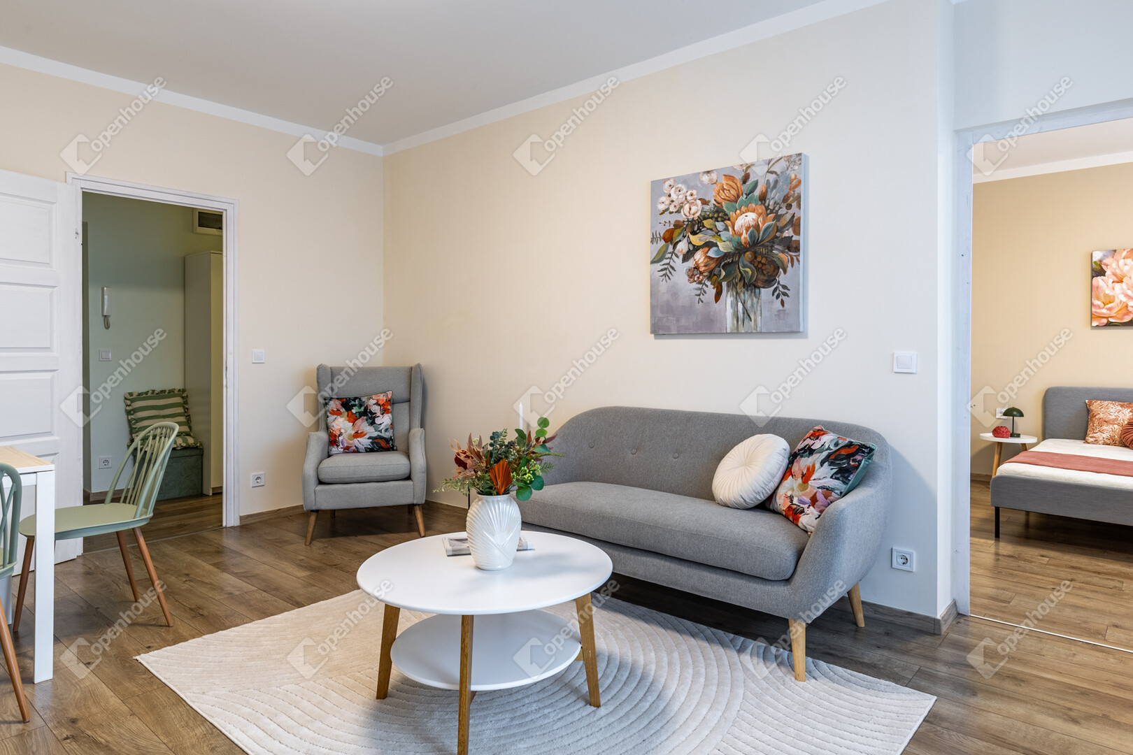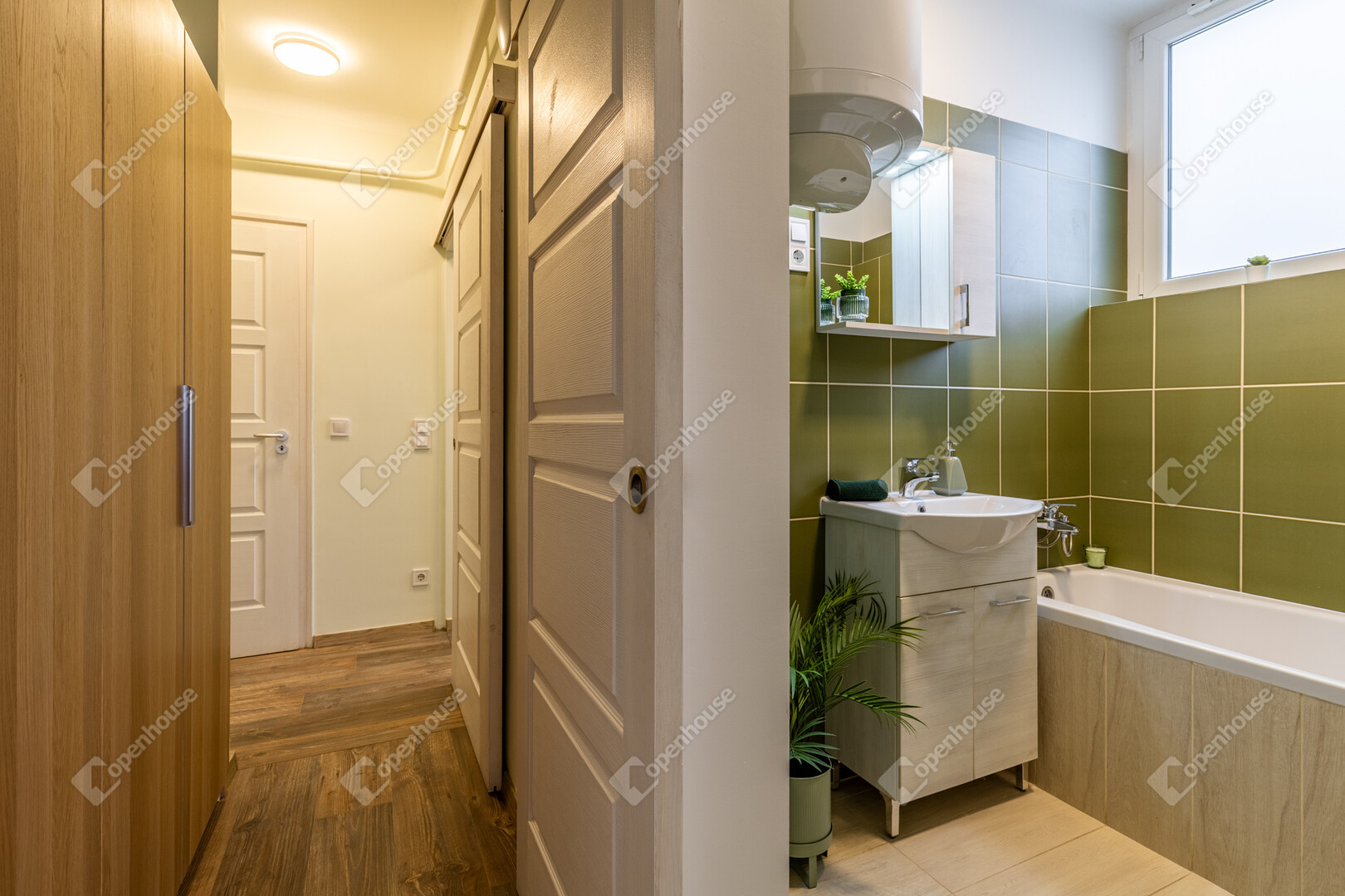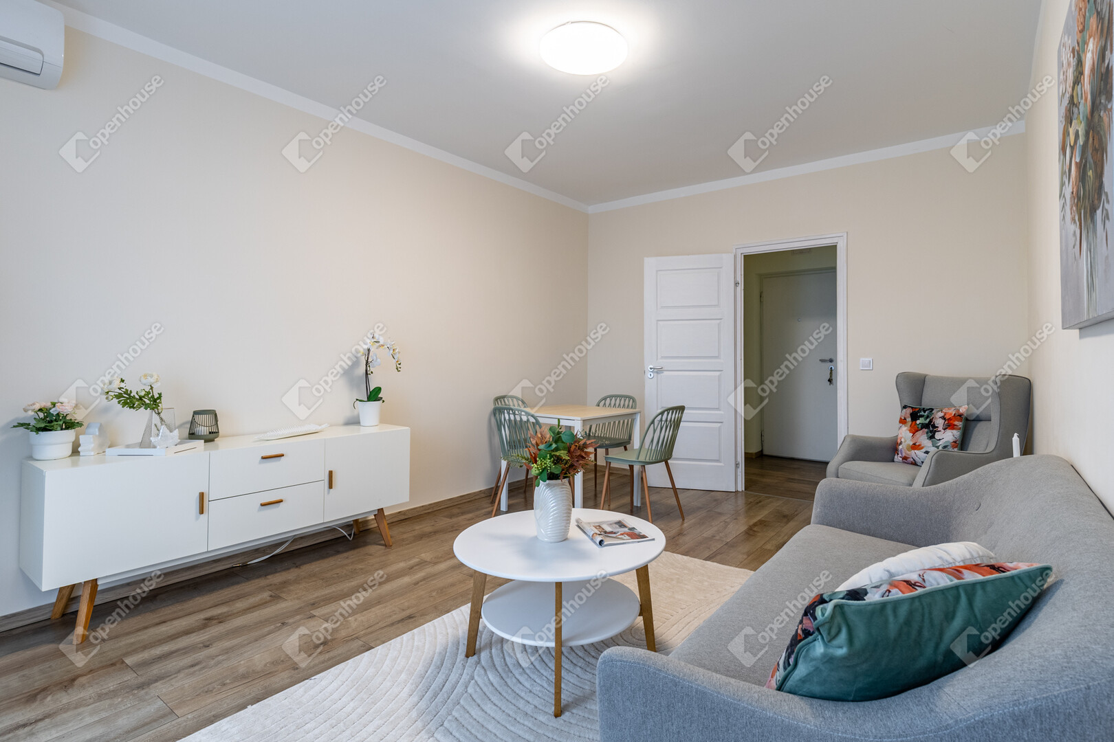 Elrendezése jól átgondolt, élhető és arányos tereket kínál: tágas nappali-étkező, külön nyíló hálószoba, önálló konyha, külön WC kézmosóval, valamint külön fürdőszoba biztosítják a kényelmes mindennapokat.