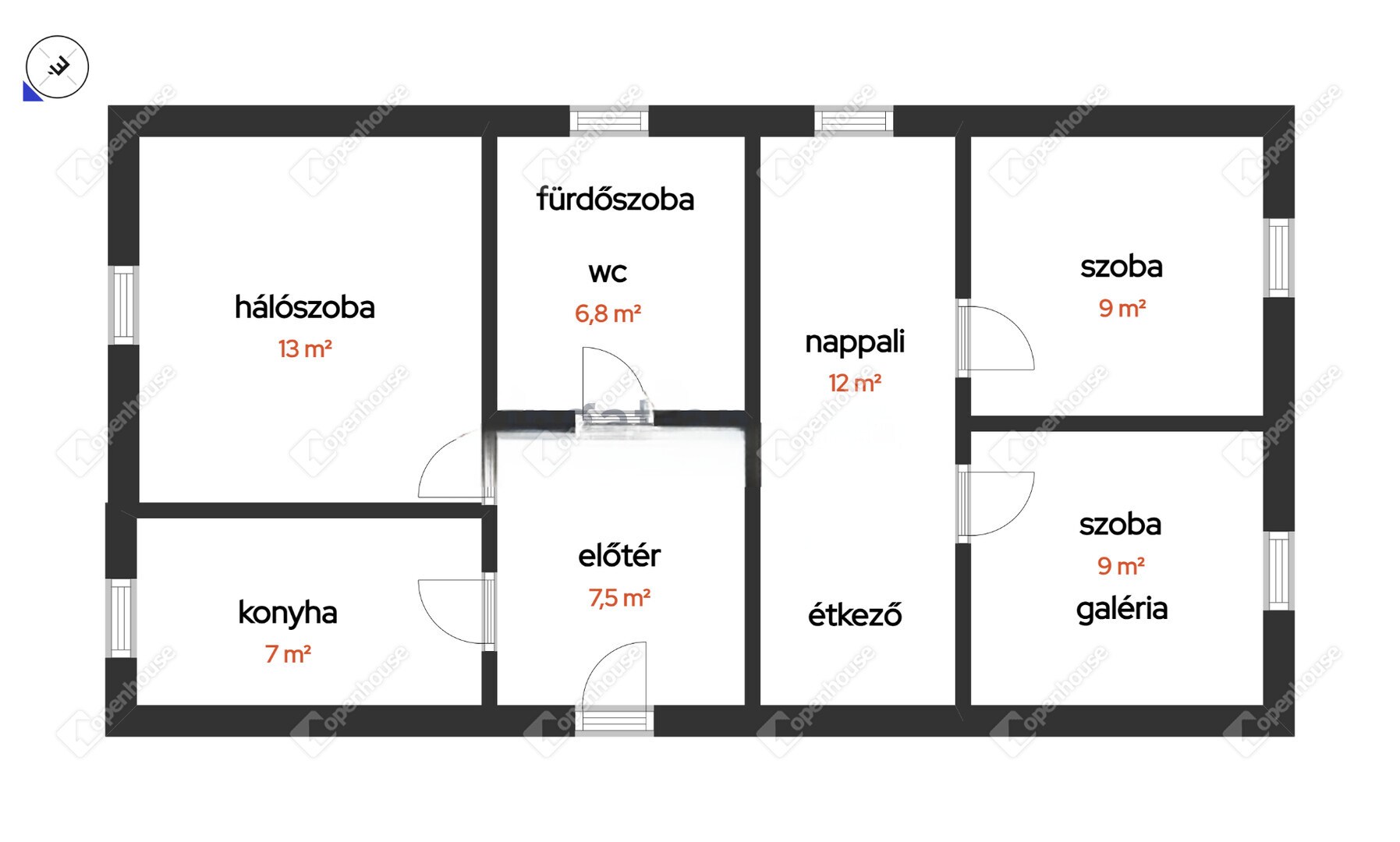 | Előtér | 7.50 m2 | Laminált padló |