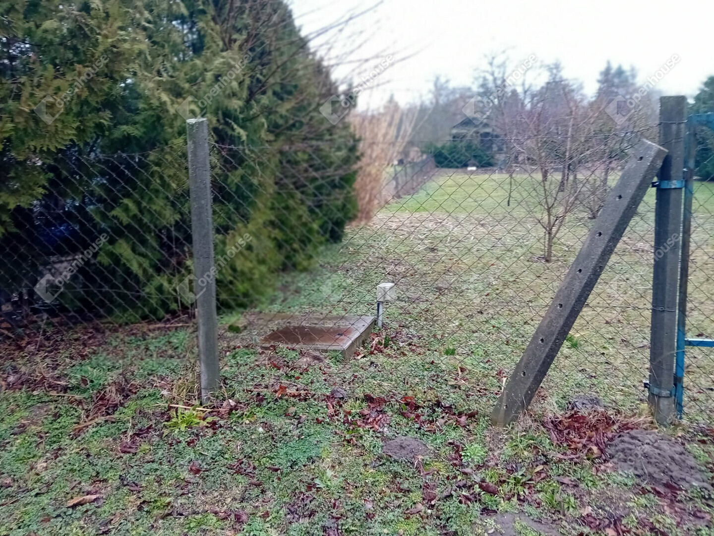 Teljesen körbekerített, jobb oldalon impozáns, gondozott tujasorral