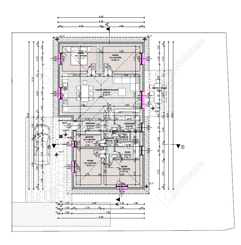A 107 m²-es, nappali + 4 szobás otthon egy 500 m²-es saját telken épül, ahol a jól átgondolt elrendezés, a korszerű műszaki tartalom és a természetközeli környezet ideális életteret biztosít a család minden tagja számára.