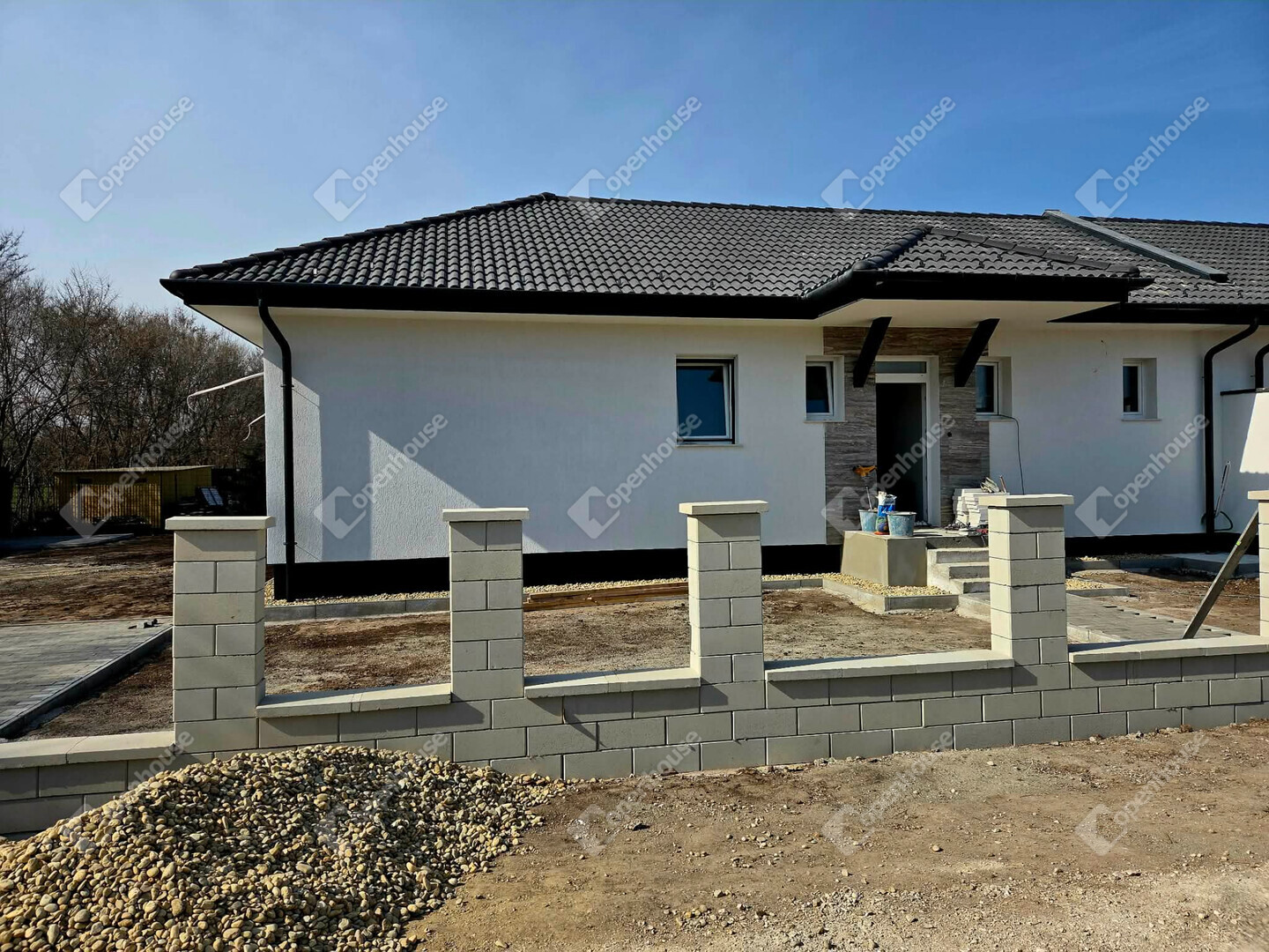 A burkolatok az Ön ízlésére vannak bízva 5.000 Ft/m² értékig, a telken pedig elektromos úszókapu és kiskapu biztosítja a kényelmes bejutást.