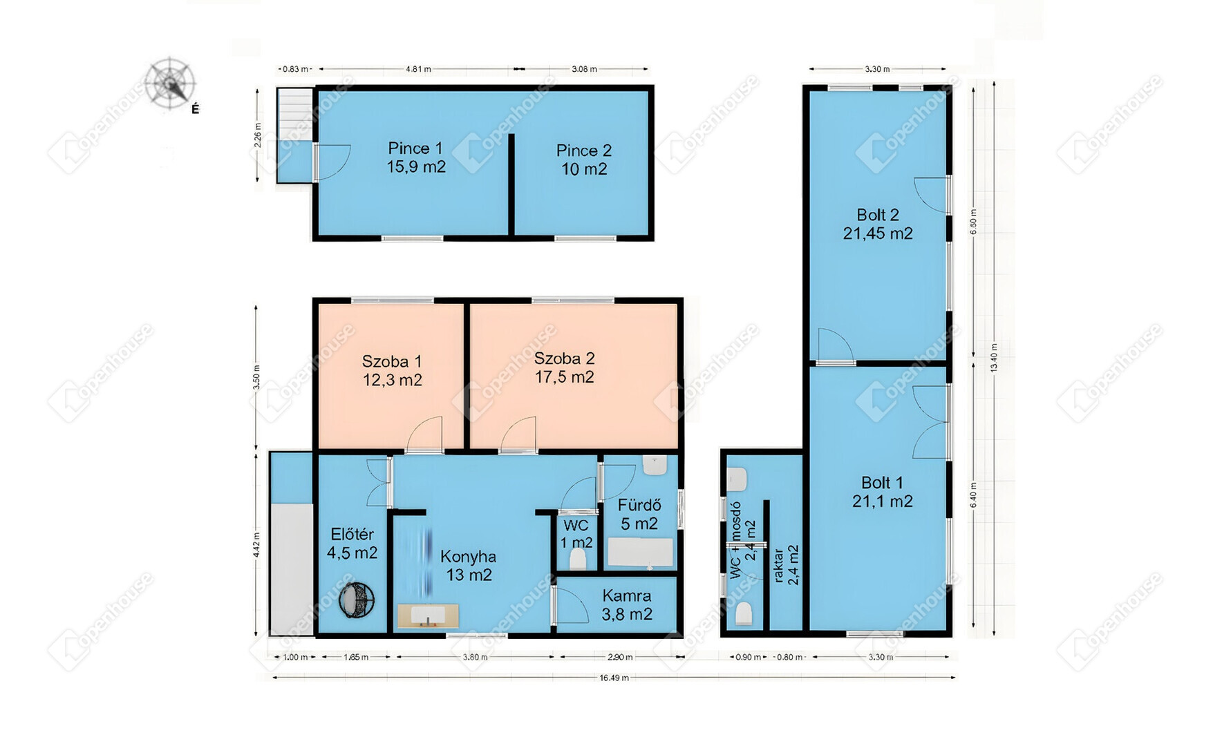 - a ház délnyugati, az üzlet északnyugati tájolású