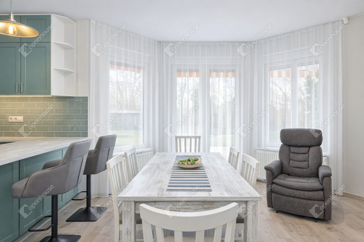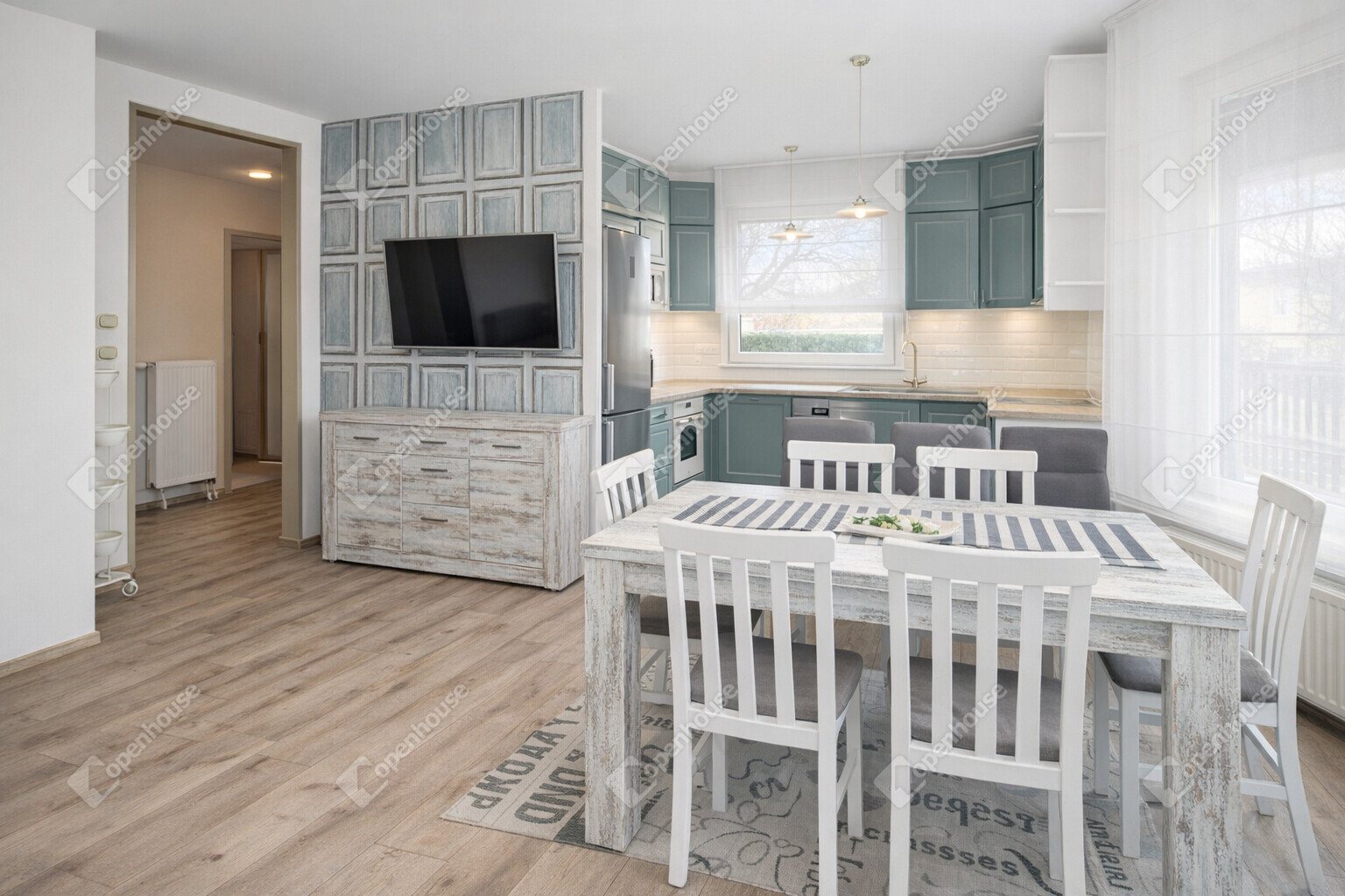 - nappali + 3 külön nyíló szoba