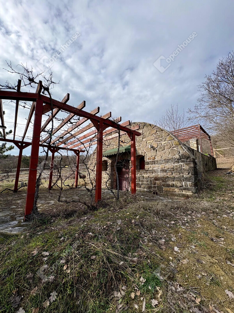 A közel 40 m²-es, régi pincéből átalakított kőház bensőséges hangulatú, tökéletesen átgondolt belső terekkel rendelkezik: amerikai konyhás nappali, hálószoba és fürdőszoba biztosítják a kényelmes pihenést. A fűtés hangulatos kandallóval megoldott – a hűvösebb esték itt valódi élménnyé válnak.