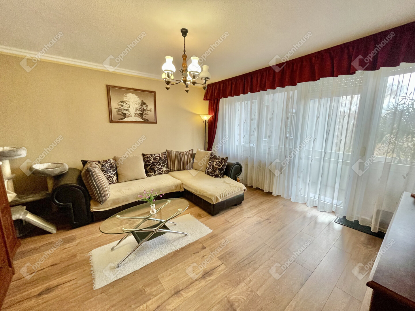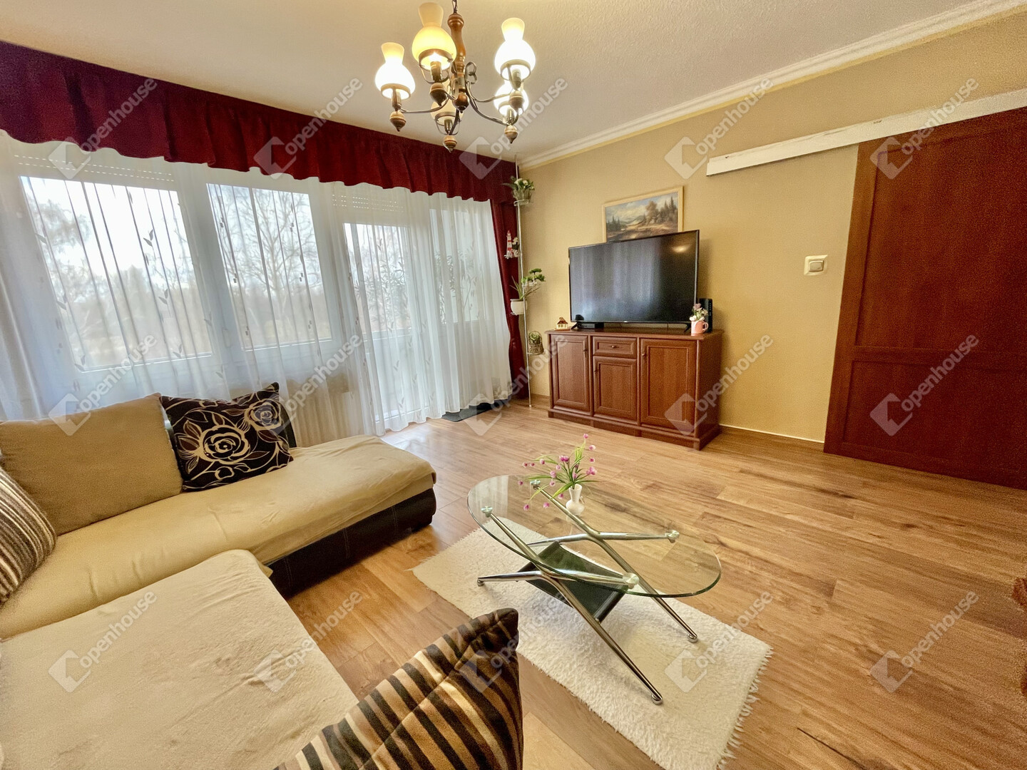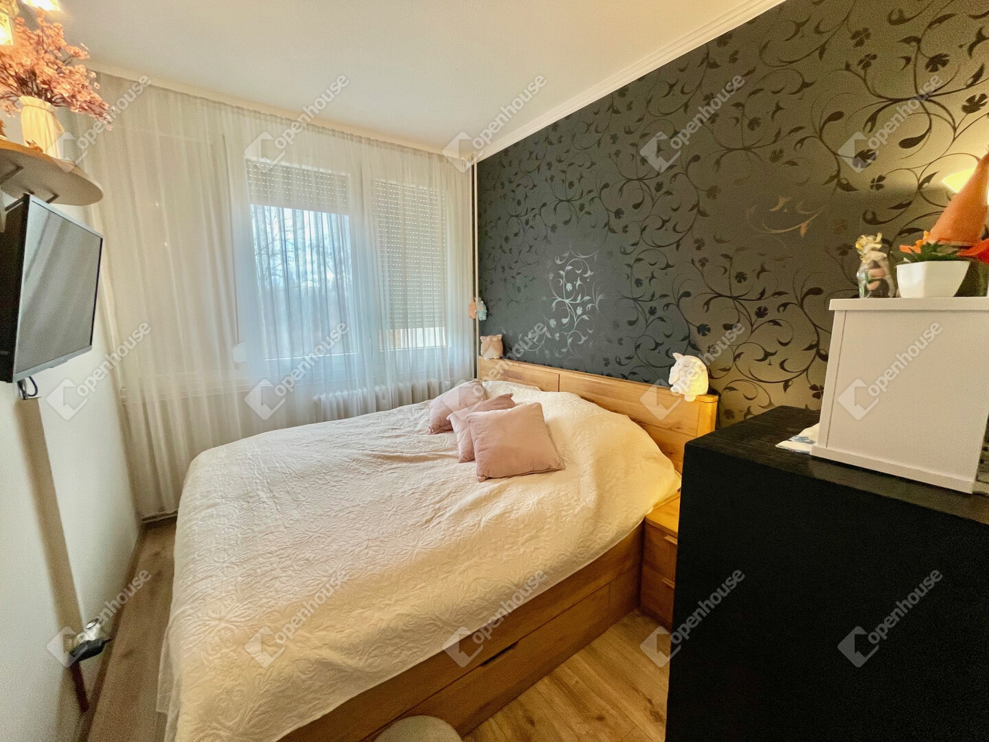 • Átgondolt elosztás: Az ingatlan eredetileg kétszobás volt, de az egyik szoba kettéosztásával egy praktikus, 3 külön bejáratú szoba jött létre. A nappalit elegáns tolóajtóval szerelték fel.