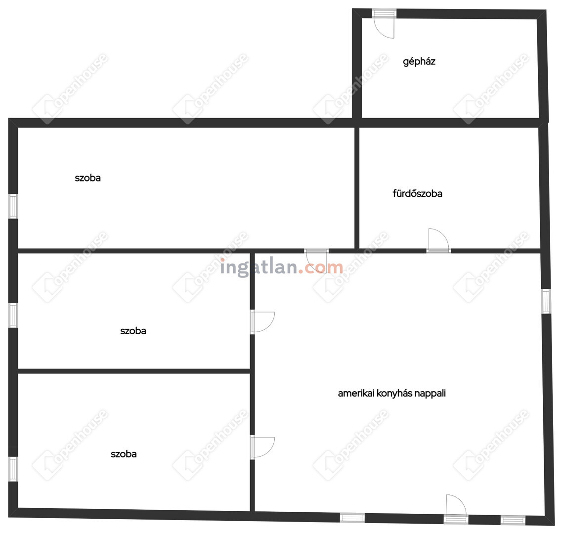 A házba lépve egy tágas, világos konyha-étkező fogad, amely ideális központja lehet a családi életnek. Innen nyílik három külön bejáratú szoba, valamint a fürdőszoba. Az elrendezés praktikus, jól bútorozható, élhető tereket biztosít.