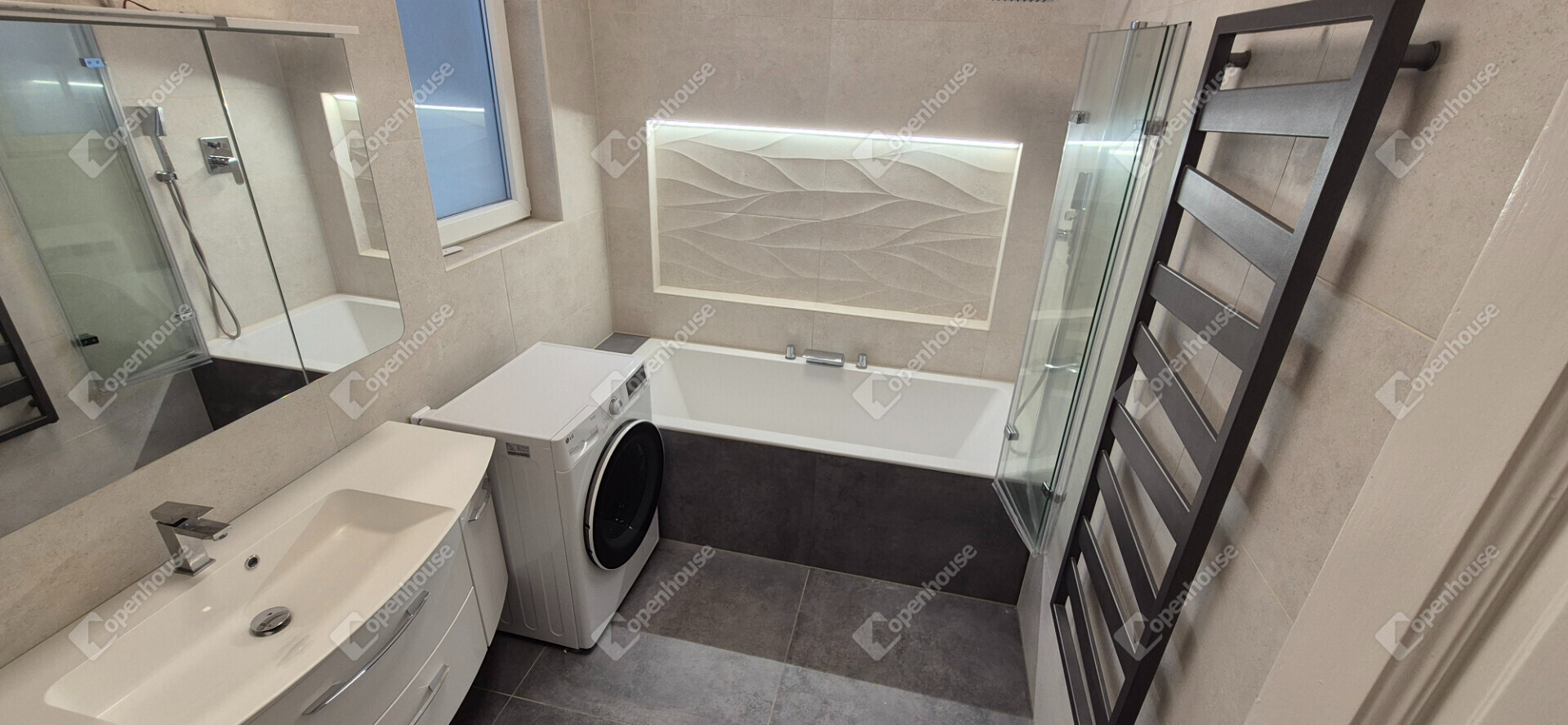 Fűtés: 2 db FÉG konvektor (esztétikus + modern) + törölközőszárító