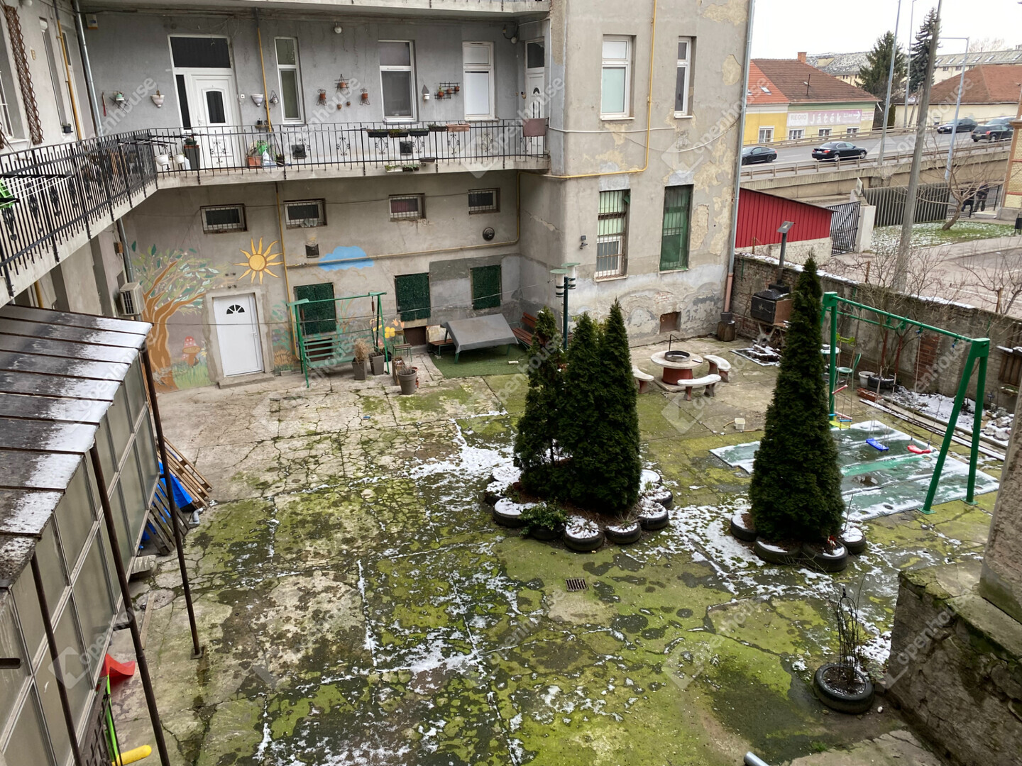 Zárt belső udvar játszótérrel és grillezőhellyel