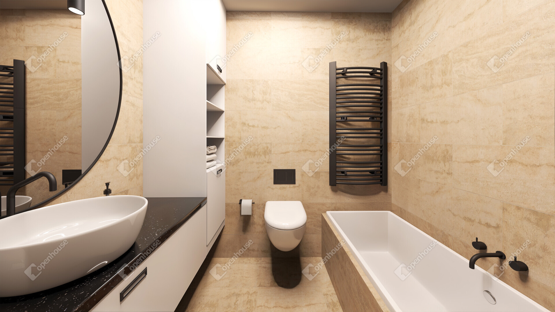 Fan-coil hőleadás, elektromos padlófűtés kiegészítéssel, szobánkénti termosztát, távirányítás és telefonos applikáció — a tökéletes hőmérséklet minden évszakban.