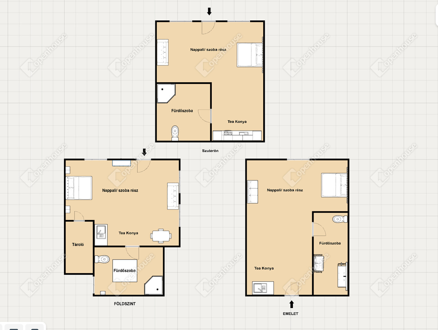 3 szint: szuterén, földszint, emelet