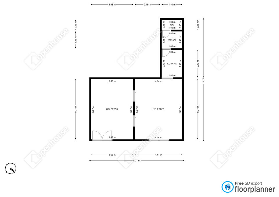Az ingatlan két különálló eladótérrel rendelkezik, így több funkció egyidejű kialakítására is alkalmas. A praktikus elrendezést teakonyha és szociális helyiségek egészítik ki, biztosítva a kényelmes mindennapi működést.