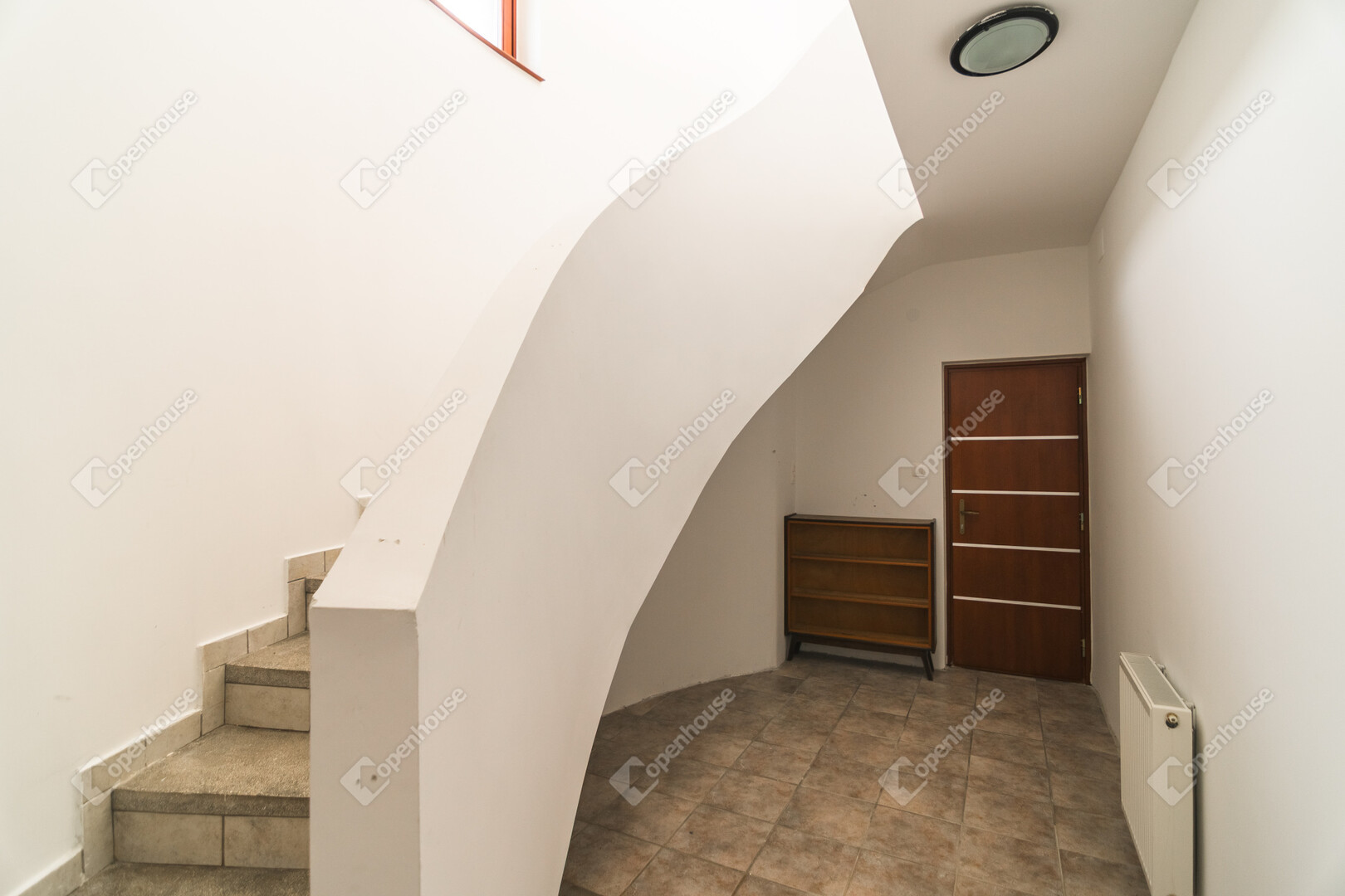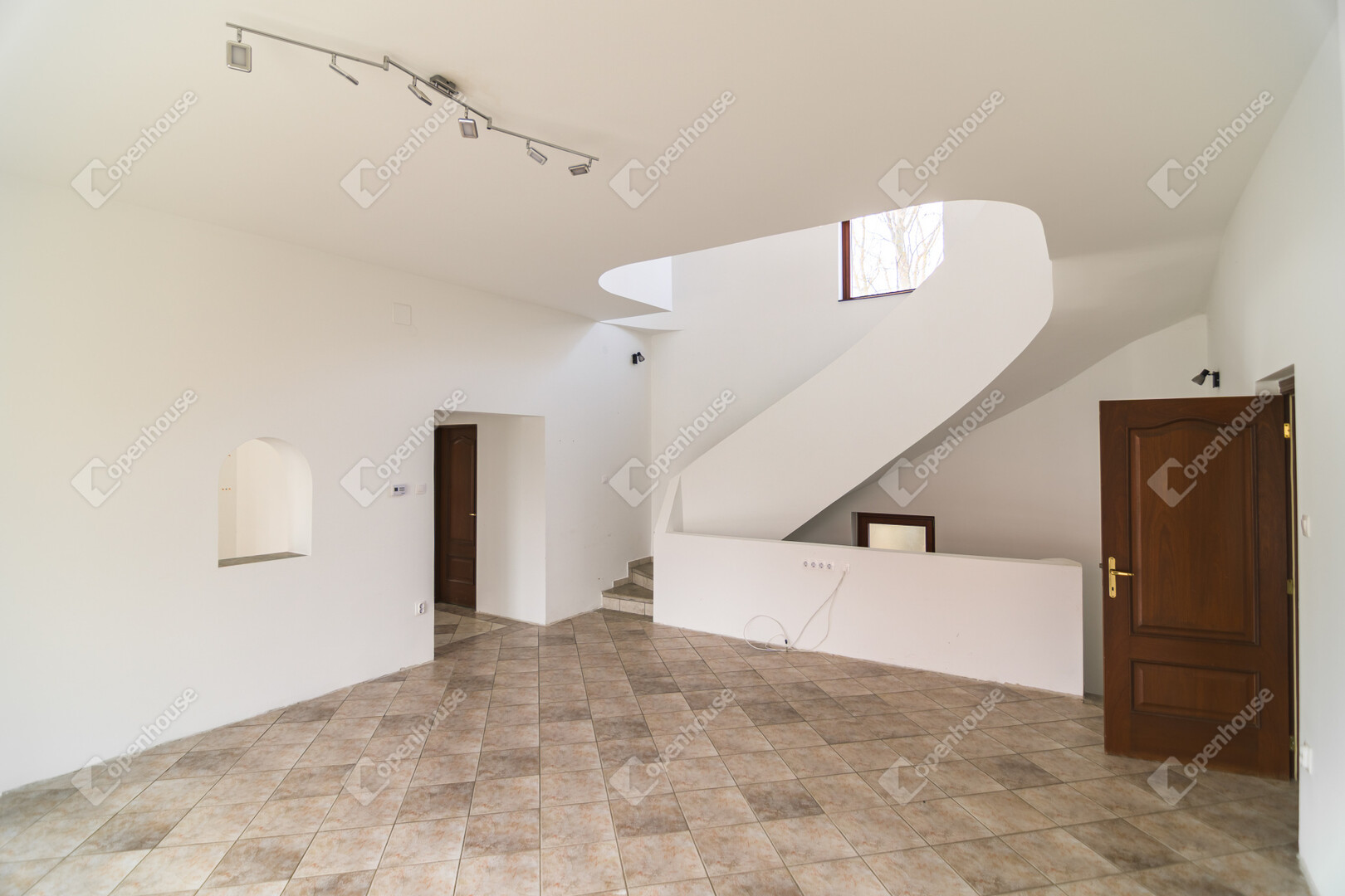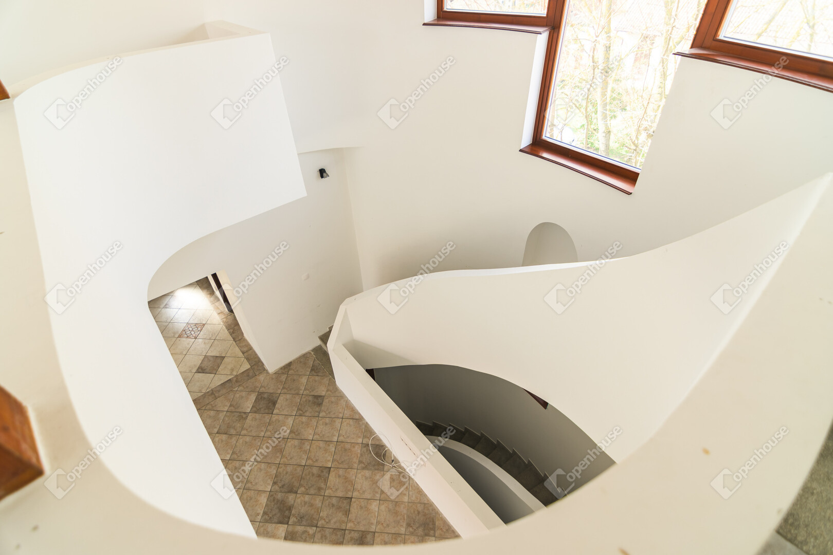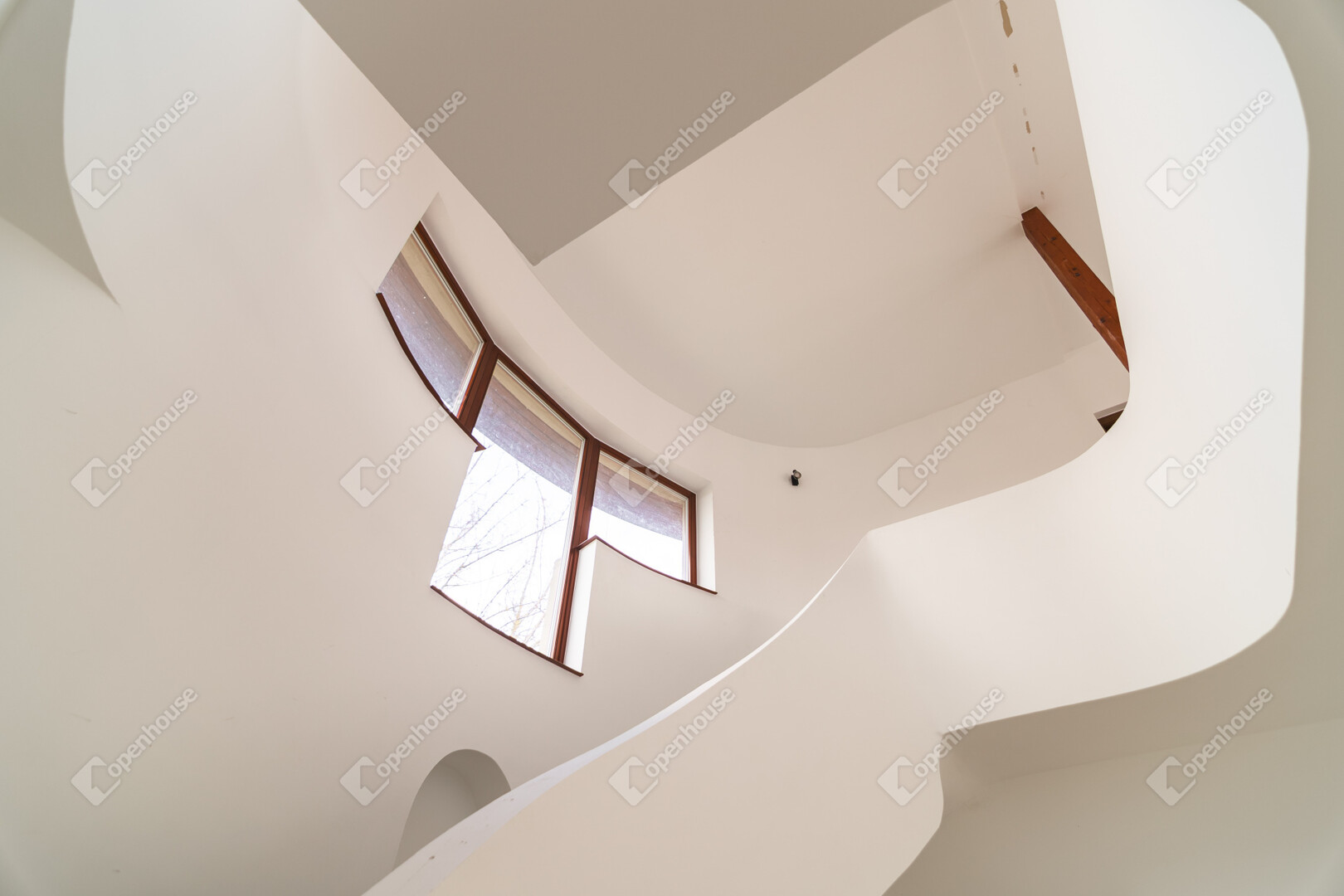 A ház már kívülről is figyelemfelkeltő: tornyos kialakítása, egyedi arányai és karakteres megjelenése különleges arculatot ad az ingatlannak. Belül a térformálás szinte szoborszerű: a csigaszerű, exkluzív lépcső, a fa berakásos, kupolaszerű étkező és az íves vonalvezetések Makovecz-hangulatot idéző, meleg, természetközeli atmoszférát teremtenek.