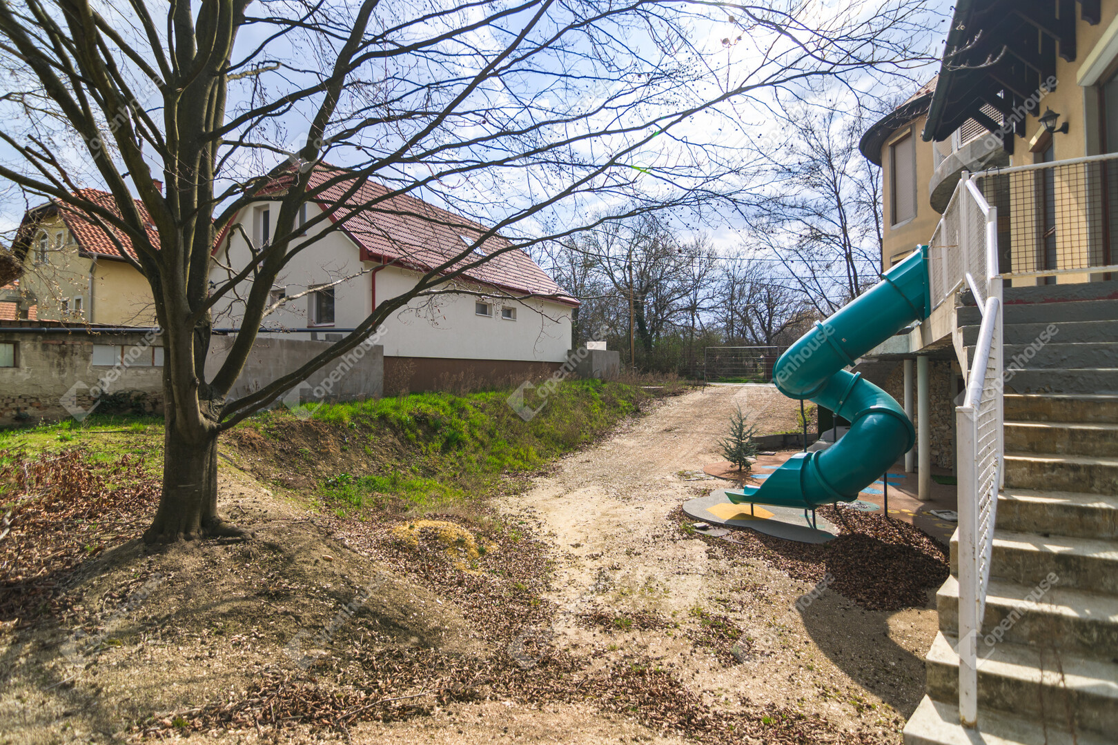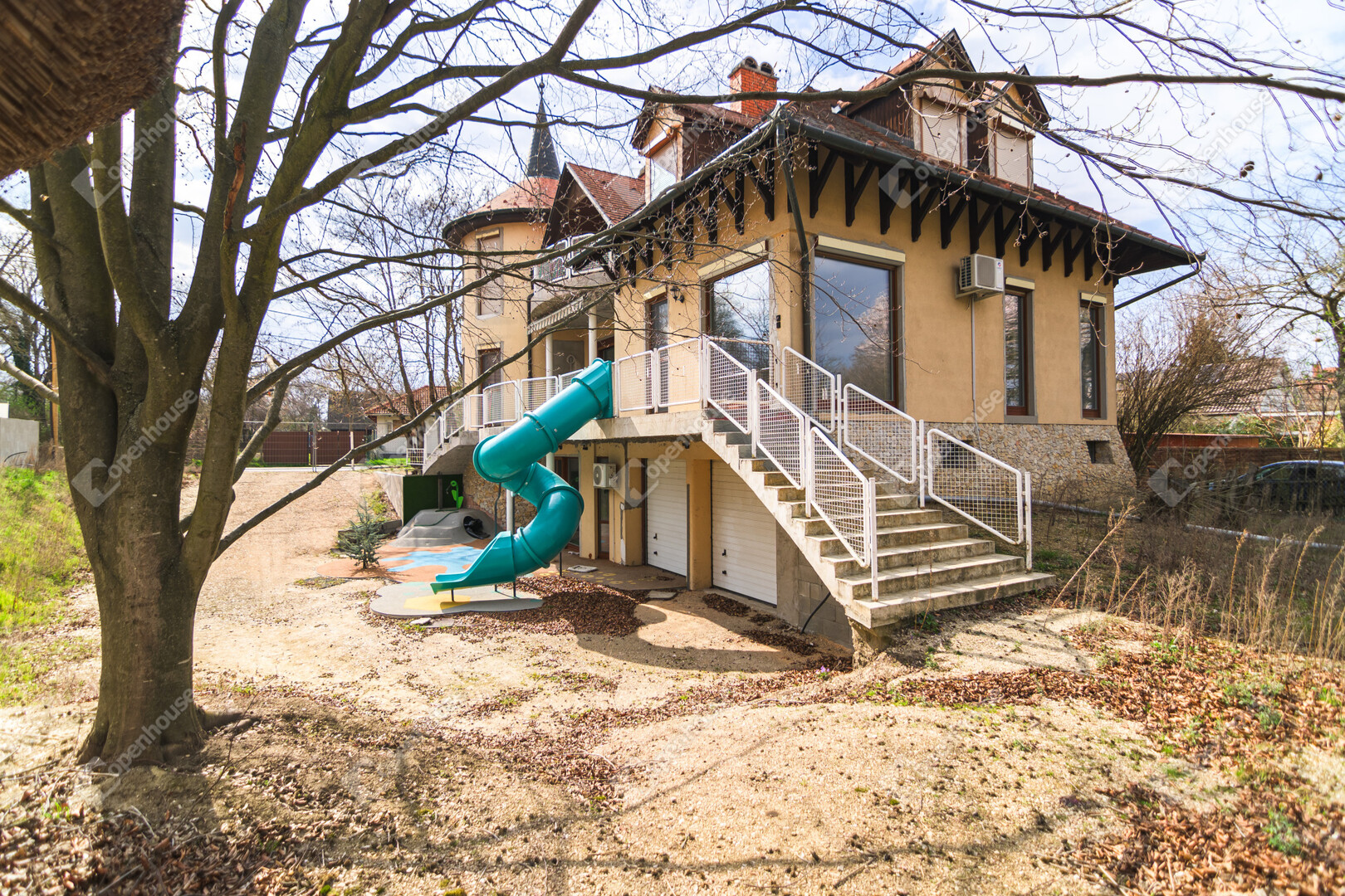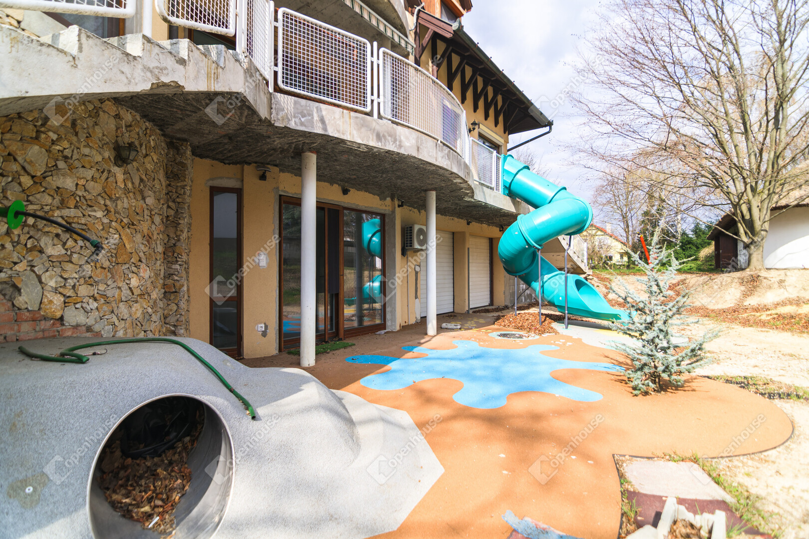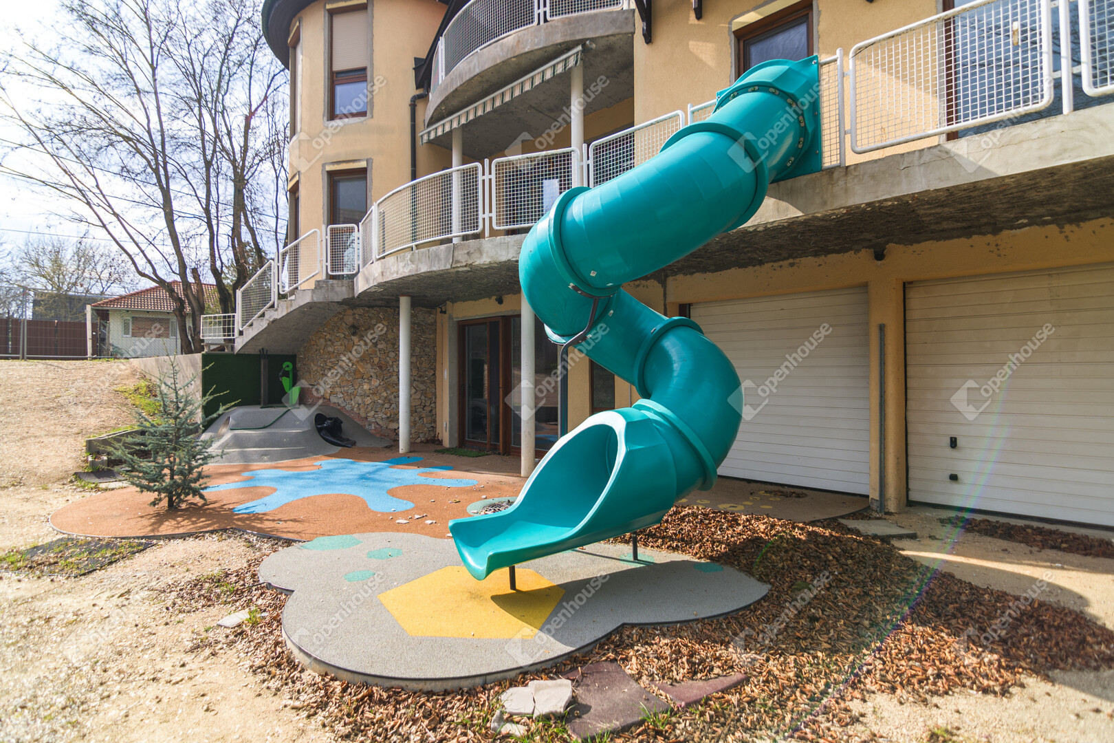 – egyedi megoldásként csúszda köti össze az első emeletet a földszinttel