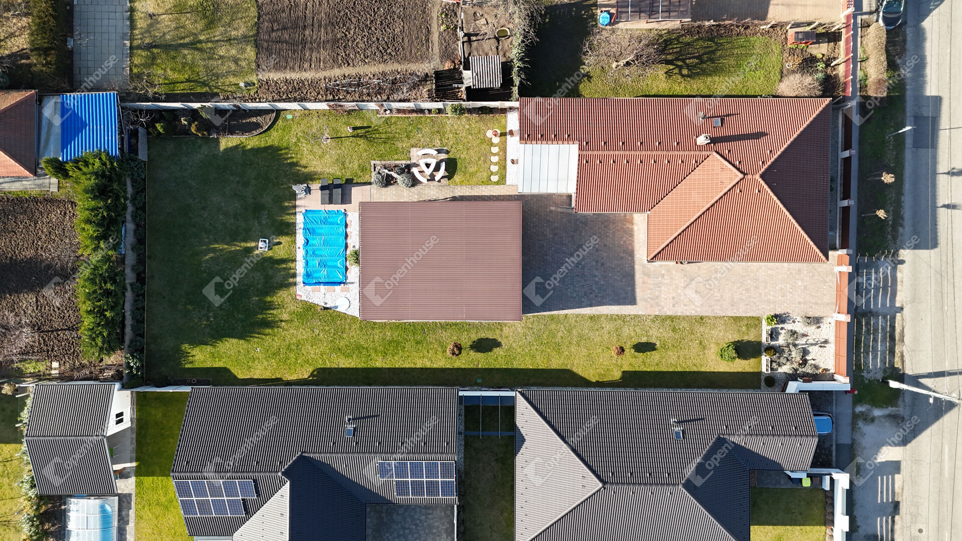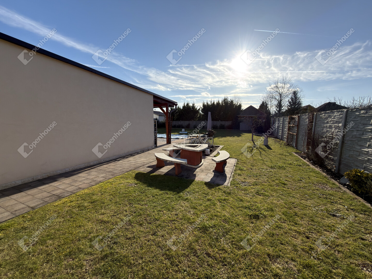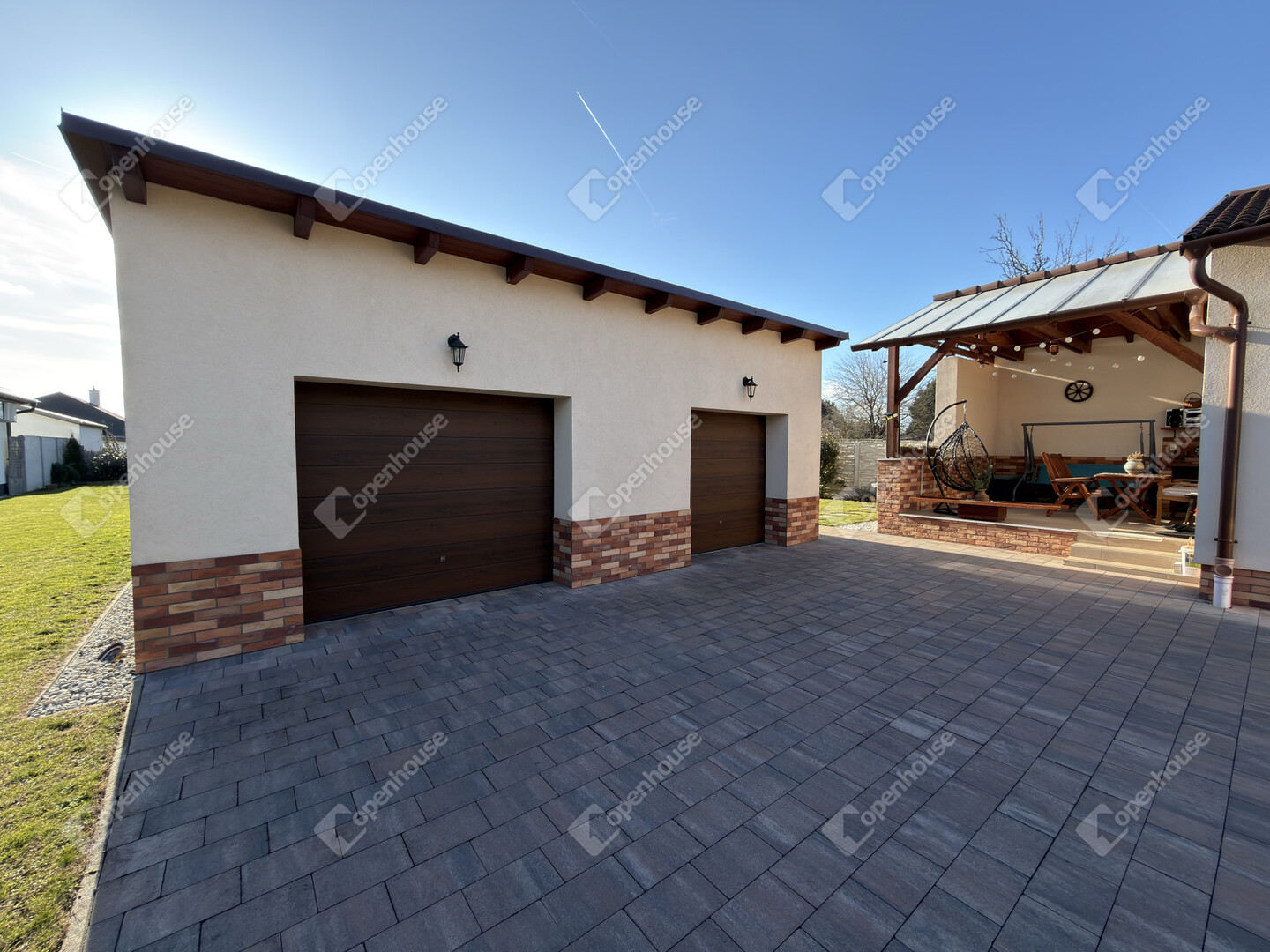 A nyári időszak kényelméről süllyesztett medence gondoskodik, a kert pedig valódi privát életteret biztosít tulajdonosának. A kert folyamatos fríssességéről Hunter automata öntözőrendszer gondoskodik. Az utcafronti alumínium kerítés pedig Hörmann automatikával van ellátva.
