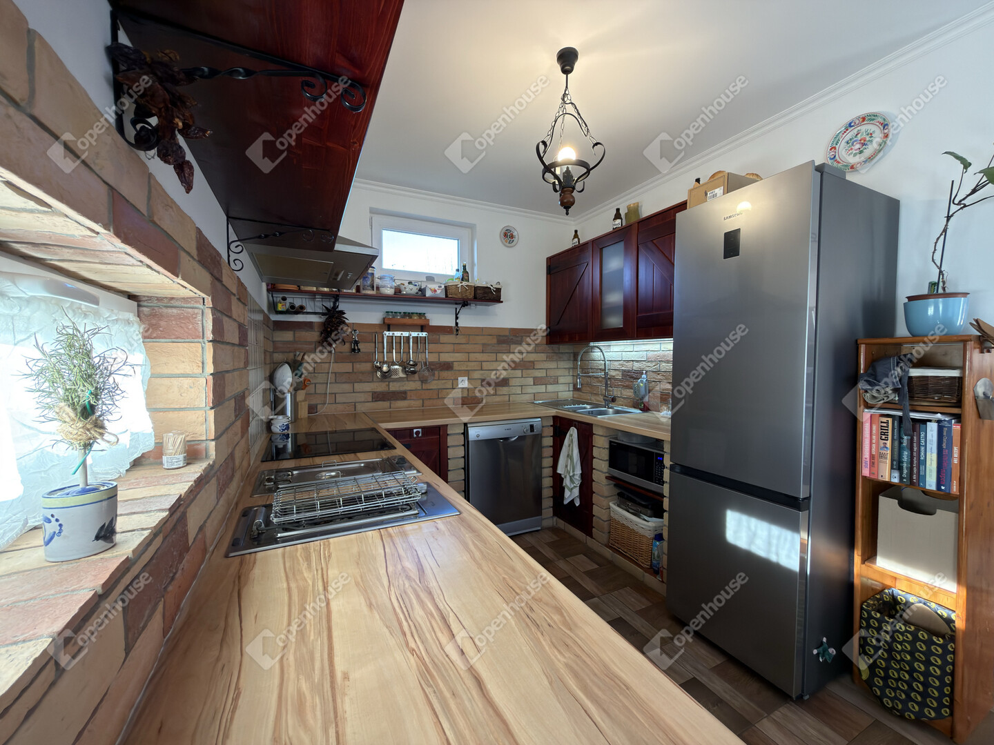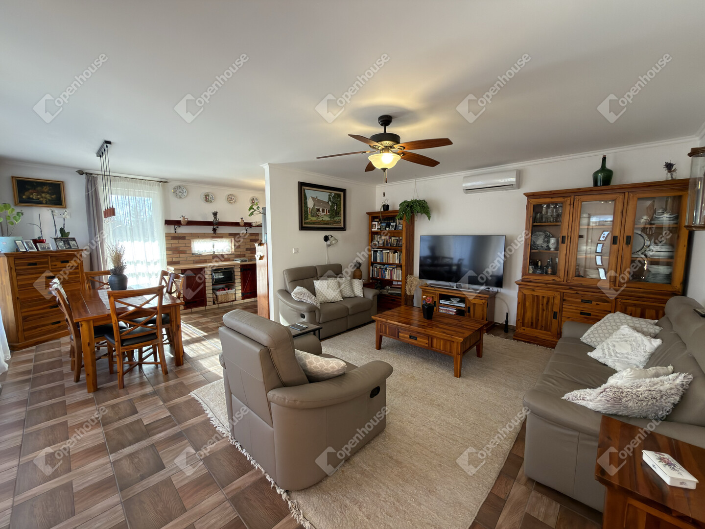 A ház hűtéséről Midea tipusú hűtő-fűtő klíma gondoskodik, a melegről pedig Ariston kombi kazán ( padló és radiátoros hő leadás). Kandalló beépítésre is van lehetőség, mivel a kémény már kiépítésre került.