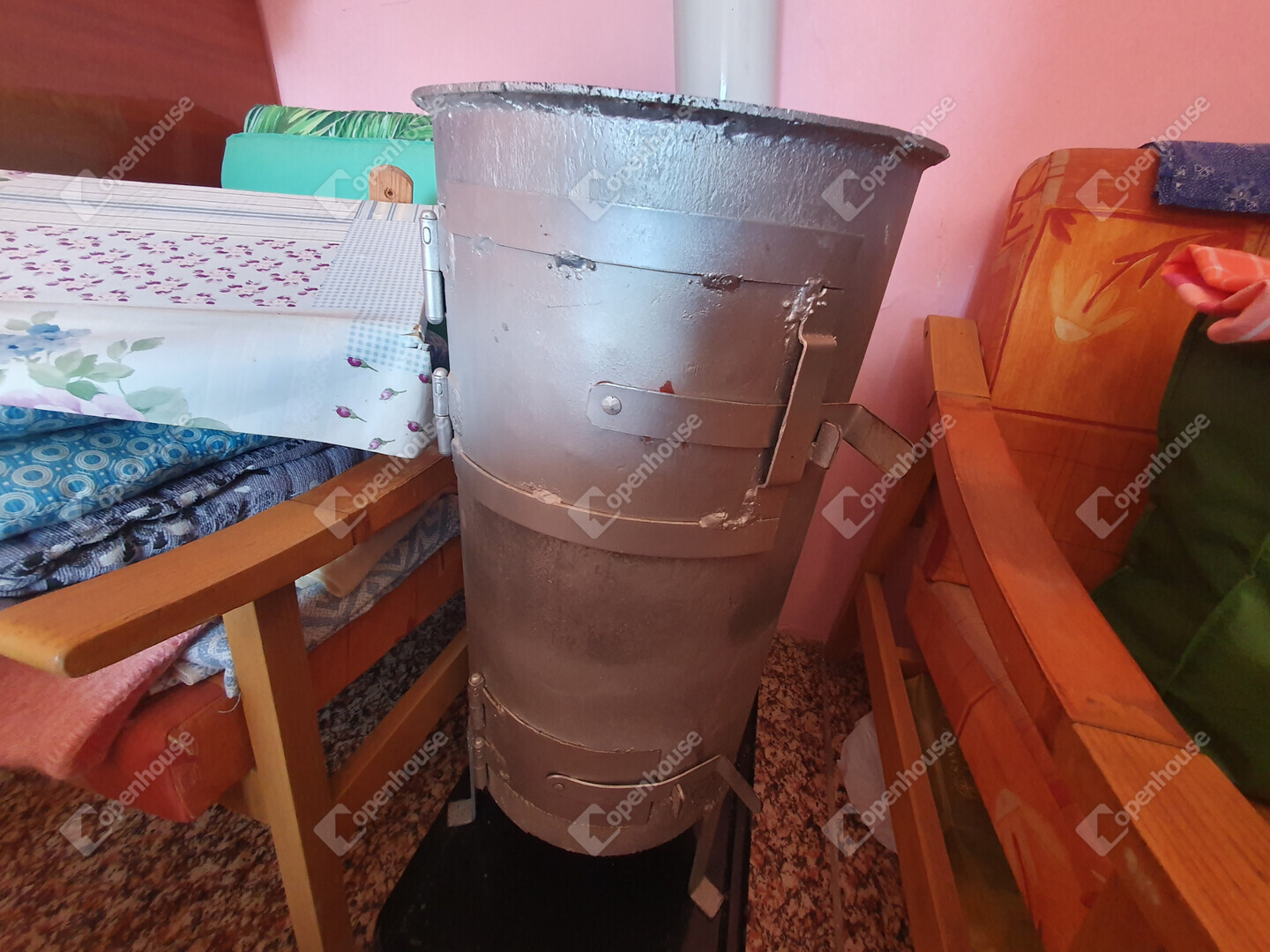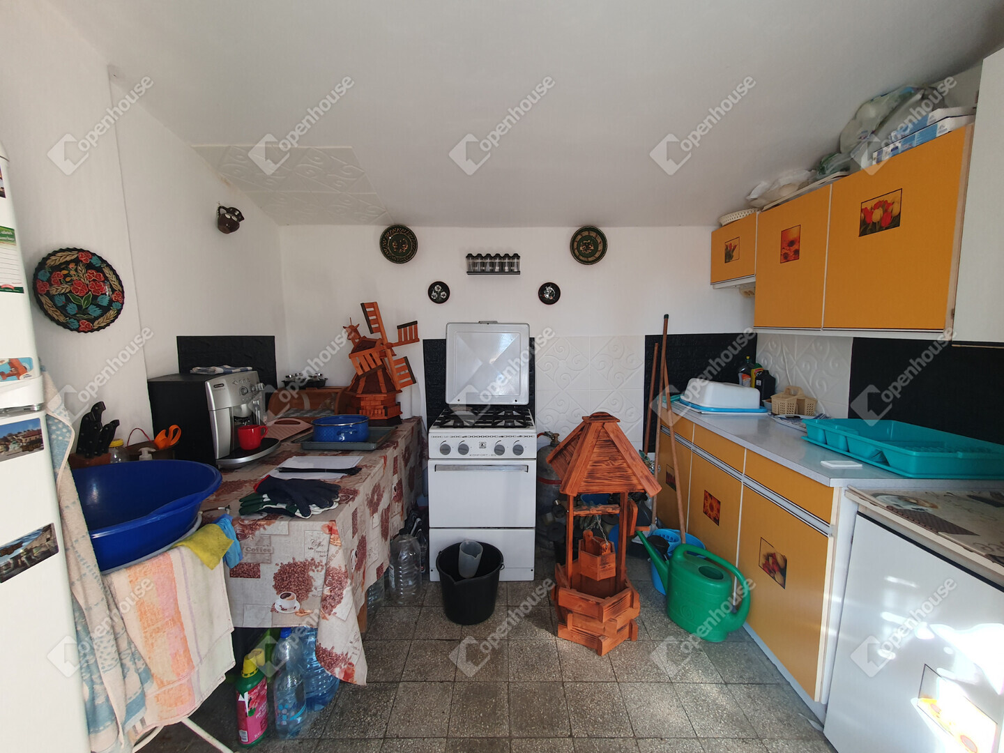 Fűtés: kályha (1 kémény a szoba és konyha között)