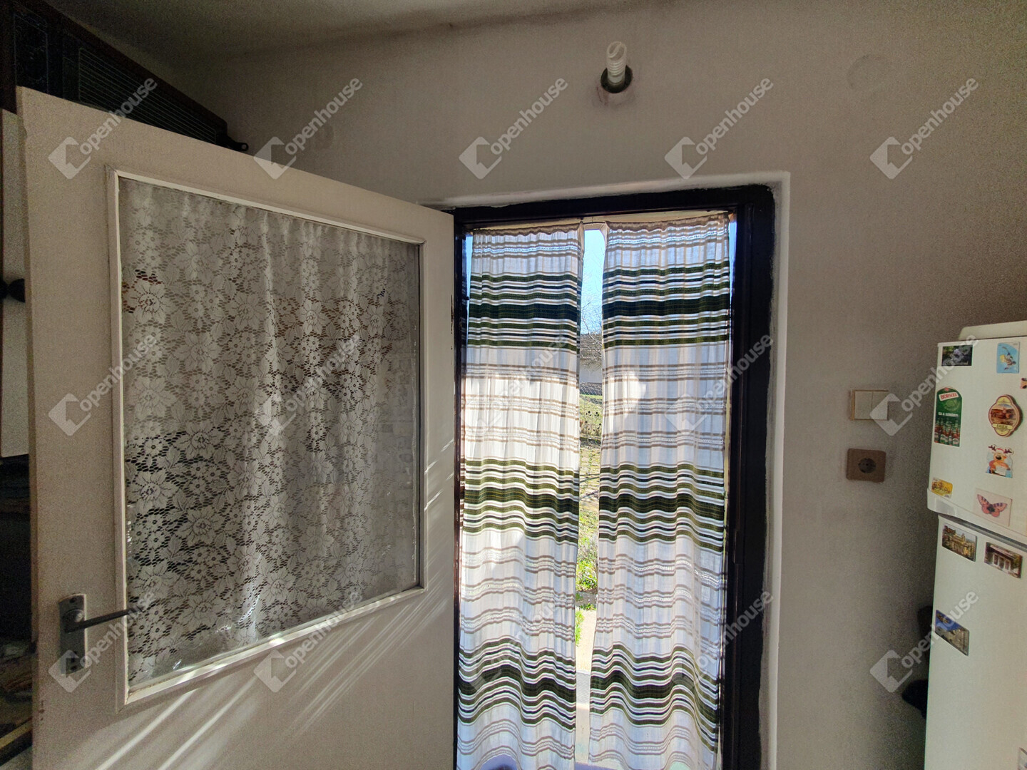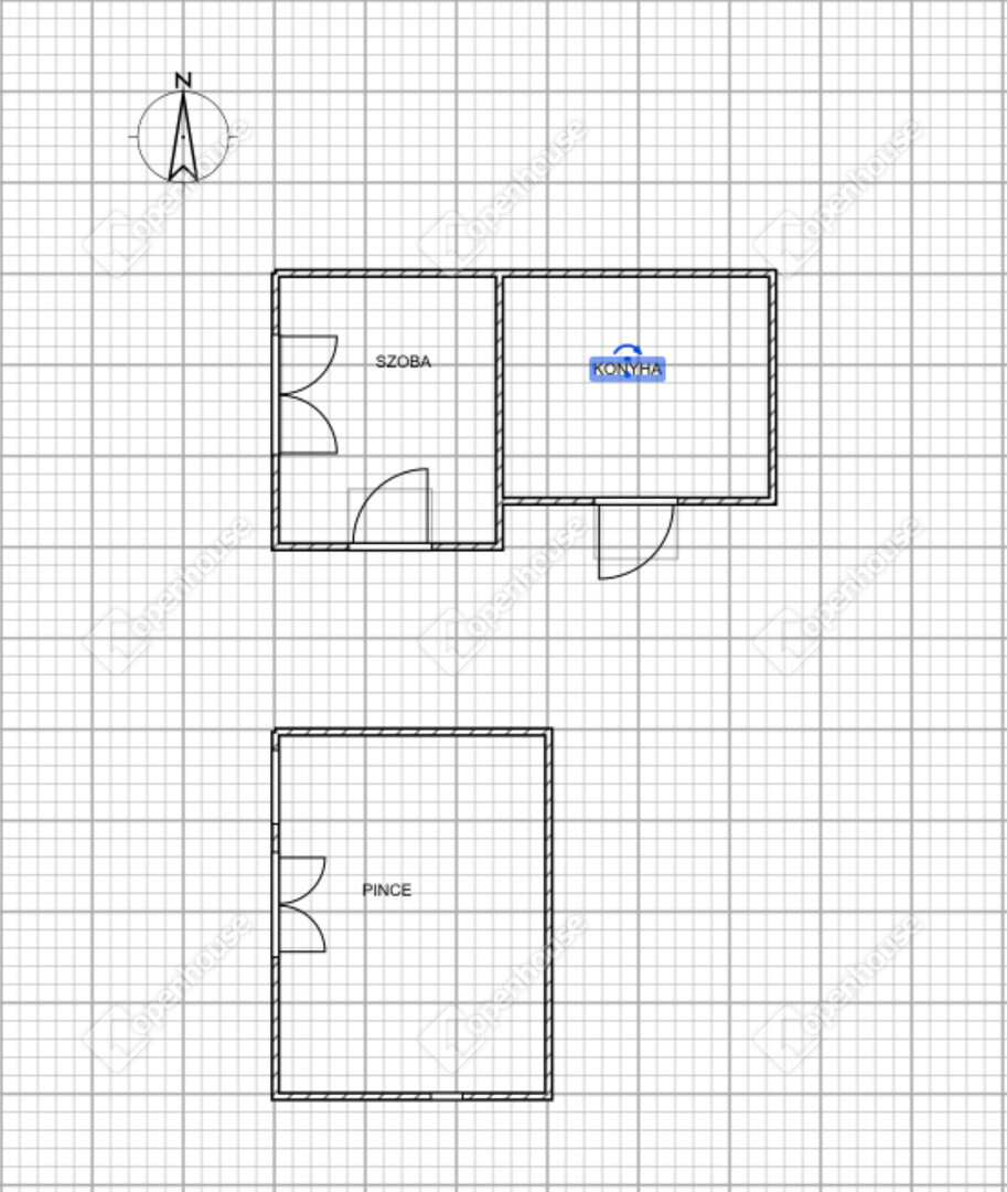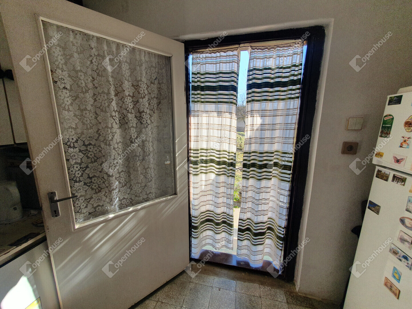 Az aszfaltozott útról közvetlen kapubejárón keresztül közelíthető meg. A teraszról nyílik a szoba, a konyha külön bejáratú. A pincerész praktikusan kialakított.