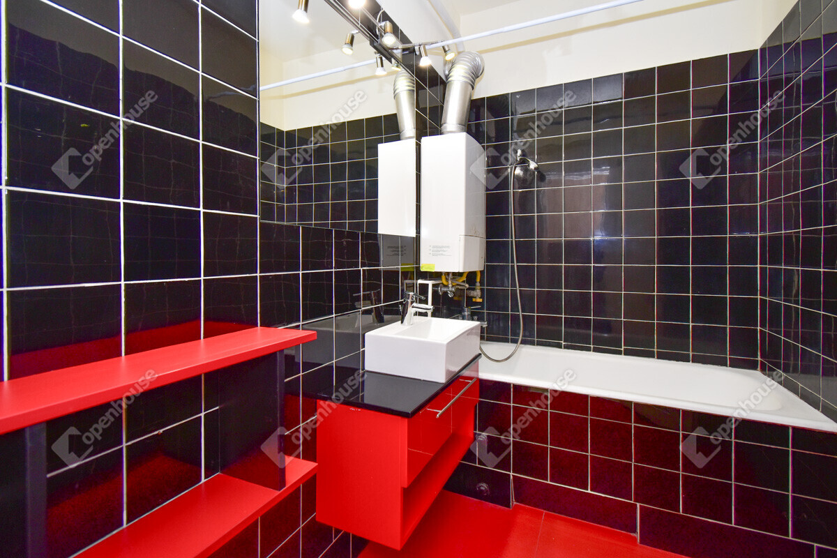 Stílusos, modern konyhabútorral felszerelt konyha, egyedi hangulatú vintage fürdőszoba – különleges atmoszféra, ami kiemeli a lakást a kínálatból.