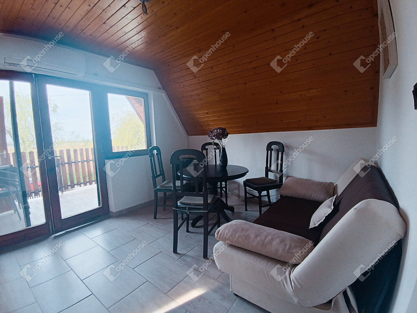 - földszint: déli fekvésű fedett terasz, 2 hálószoba, nappali/konyha/étkező, fürdőszoba/WC