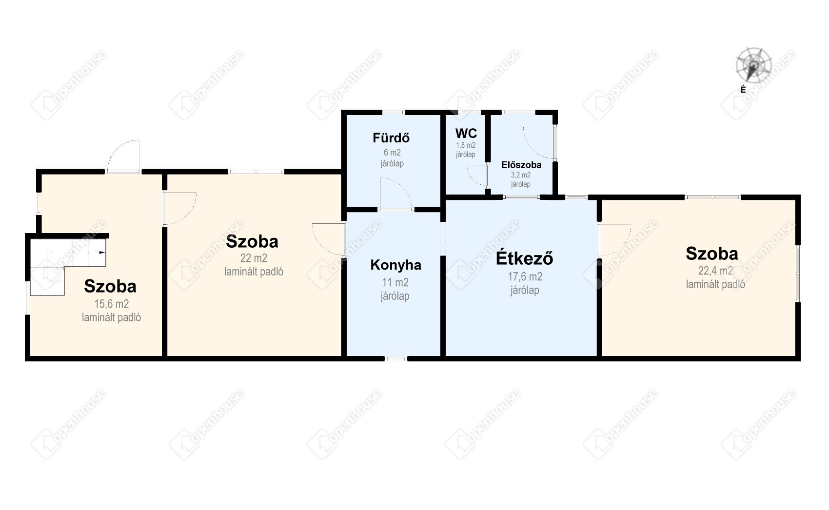 | Szoba | 22.40 m2 | Laminált padló |