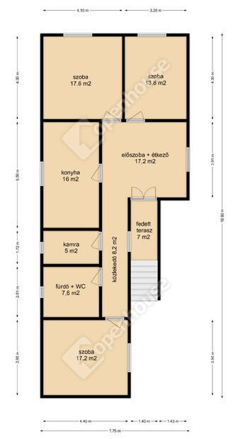 A ház barátságos, jó elrendezésű, három szobája és tágas terei meghitt életteret biztosítanak egy család számára, illetve ezáltal igény szerint nagyon könnyen alakítható.