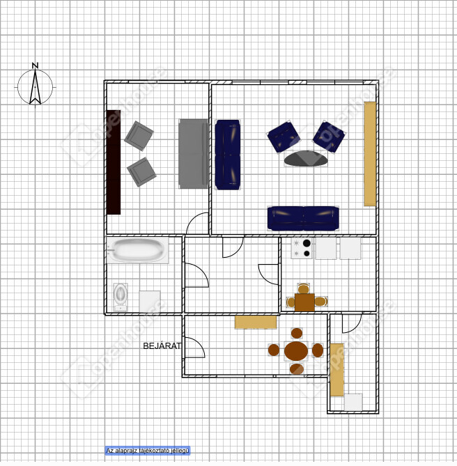 | Előtér | 6.00 m2 | Járólap |