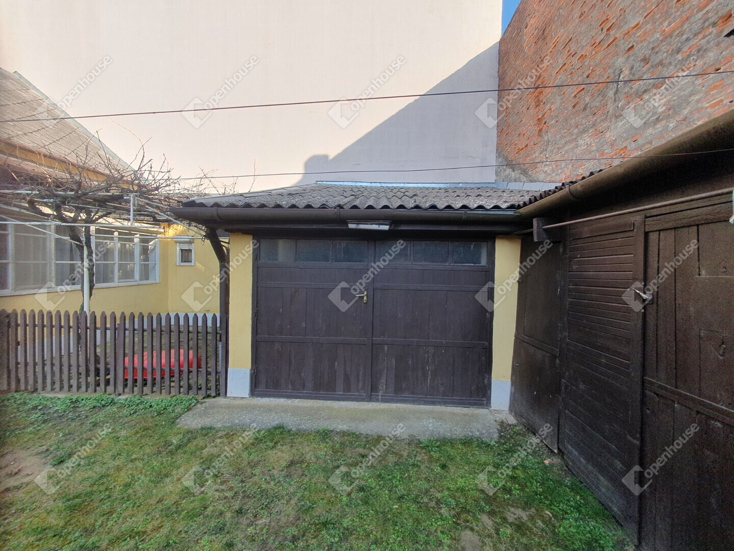 Két saját tároló az udvarban (egy garázs méretű + egy kisebb)
