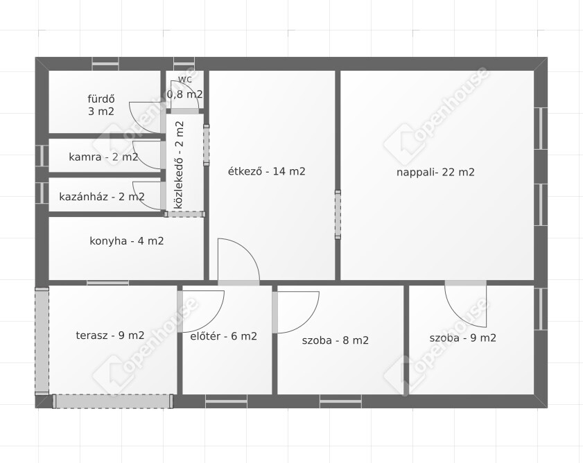 | Szoba | 8.00 m2 | Laminált padló |