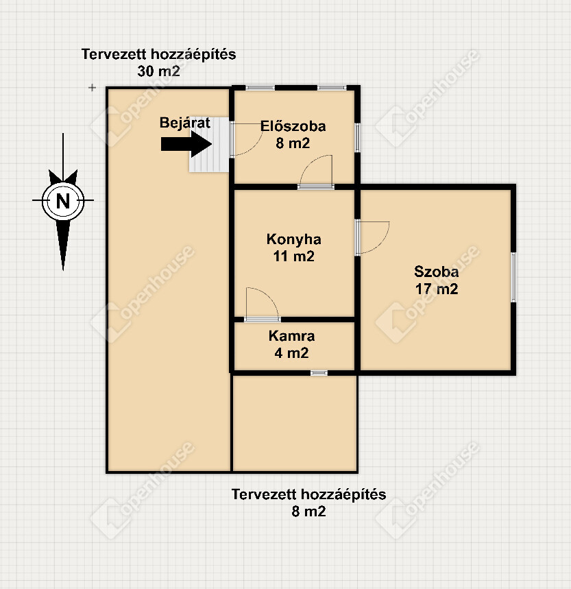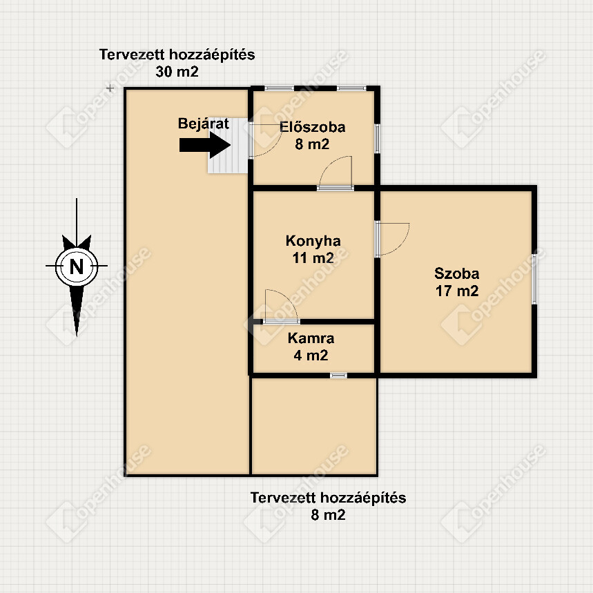 | Kamra | 4.00 m2 | Burkolat nélküli |
