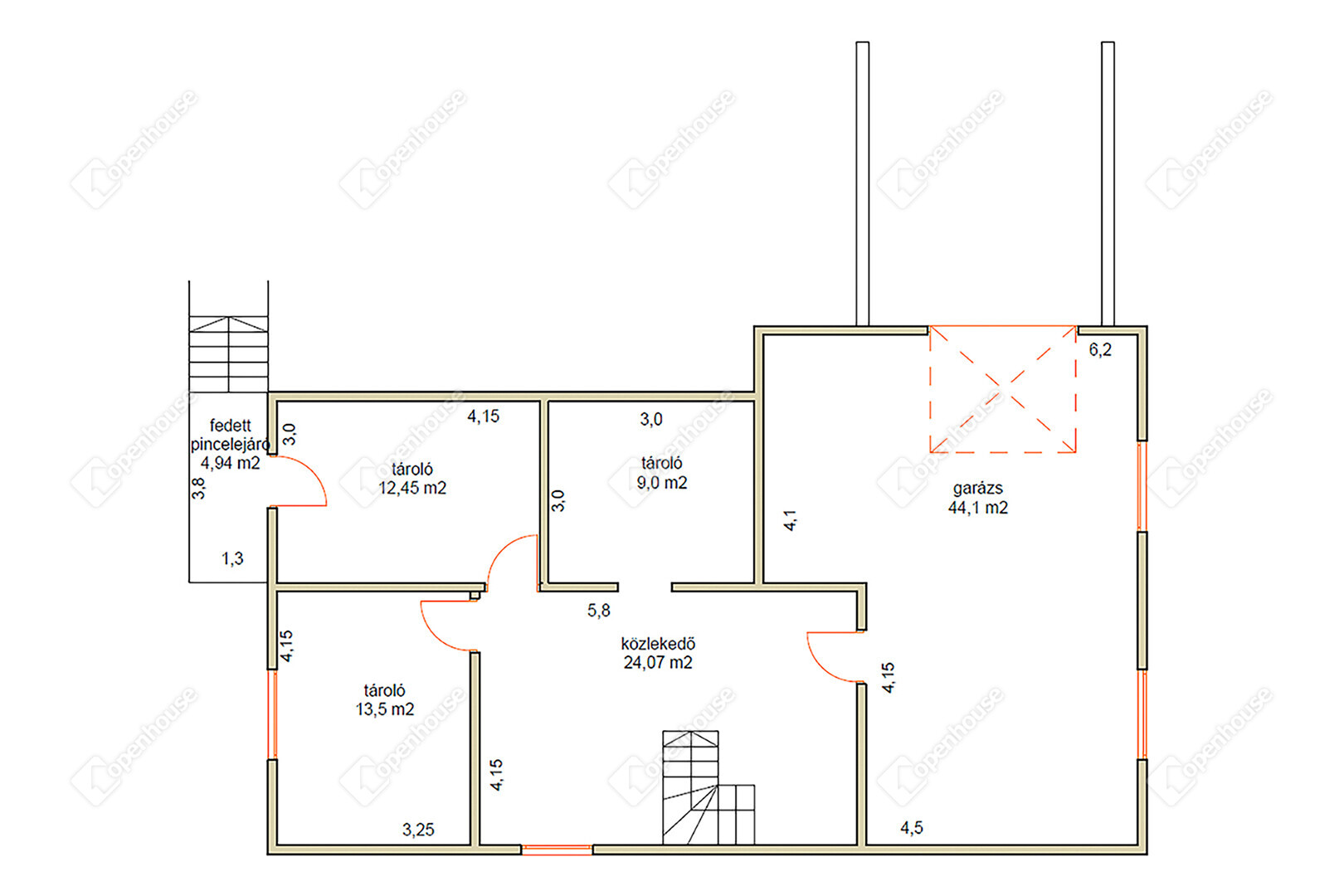 - alagsor: garázs, tároló- és gépészeti helyiségek