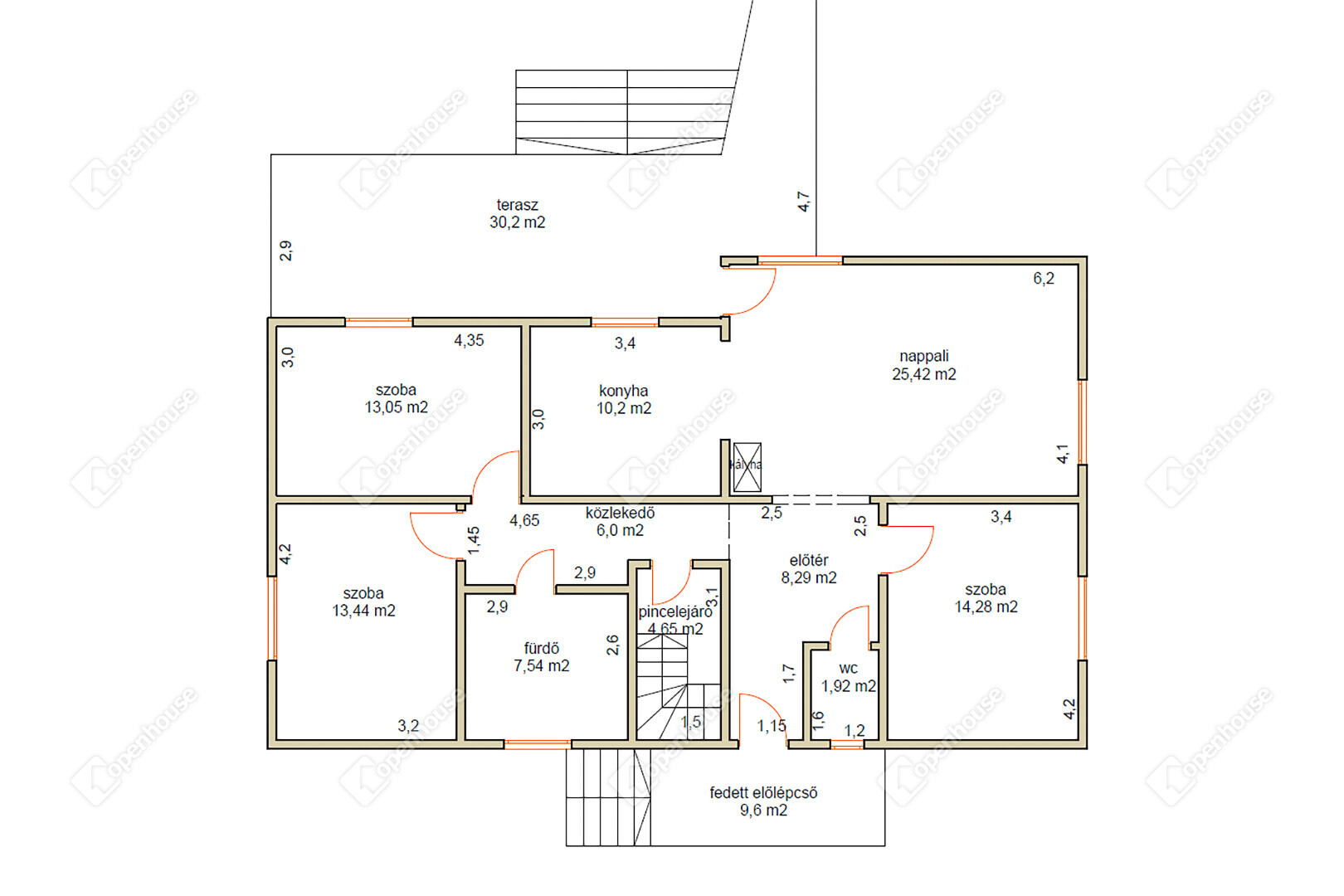 | Terasz | 30.00 m2 | Járólap |