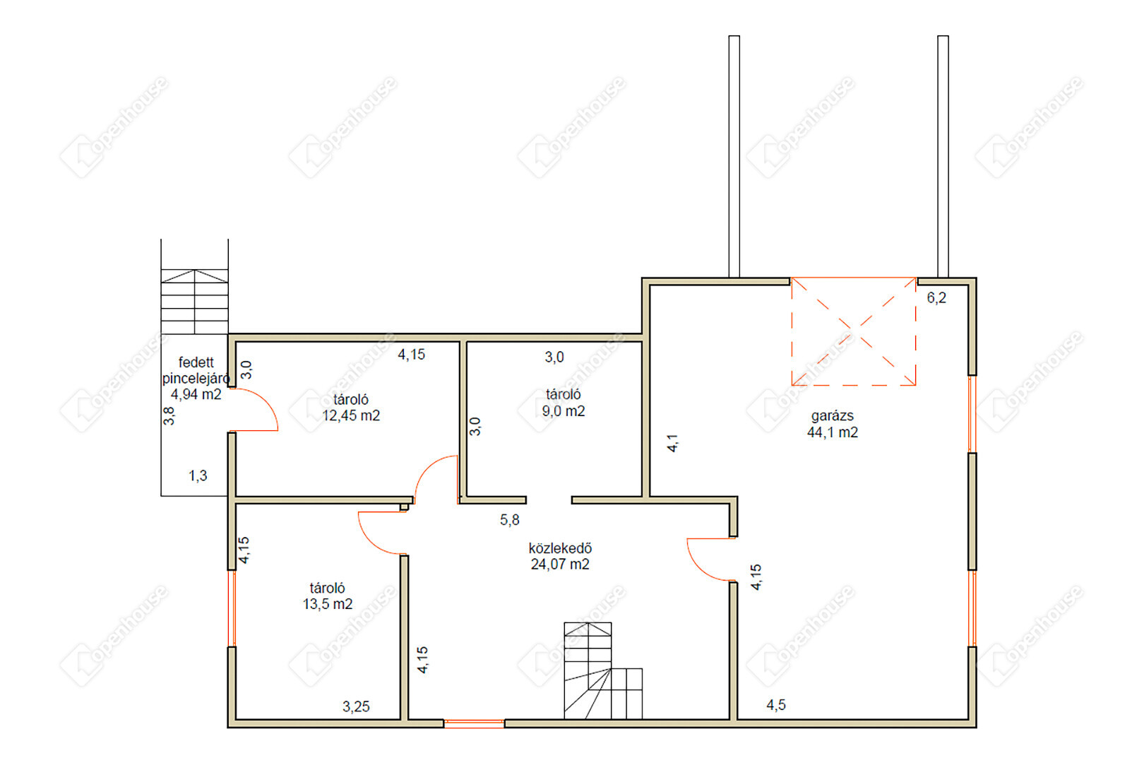 | Tároló | 13.50 m2 | Beton |
