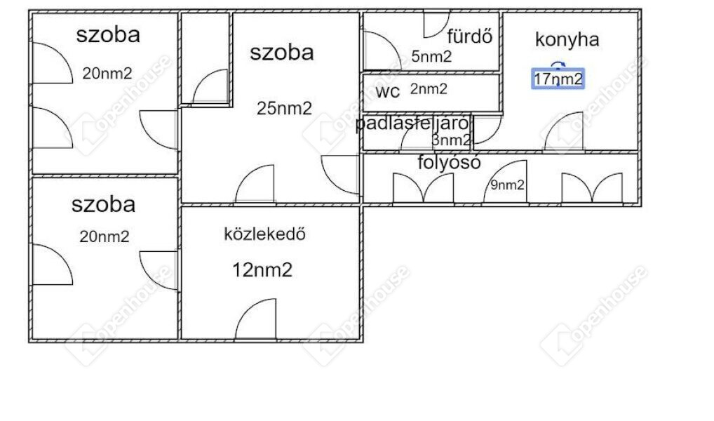 | Szoba | 25.00 m2 | Faparketta |