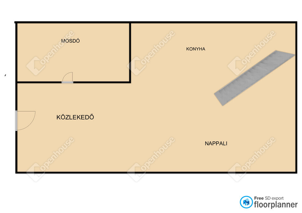 nappali + konyha + fürdőszoba
