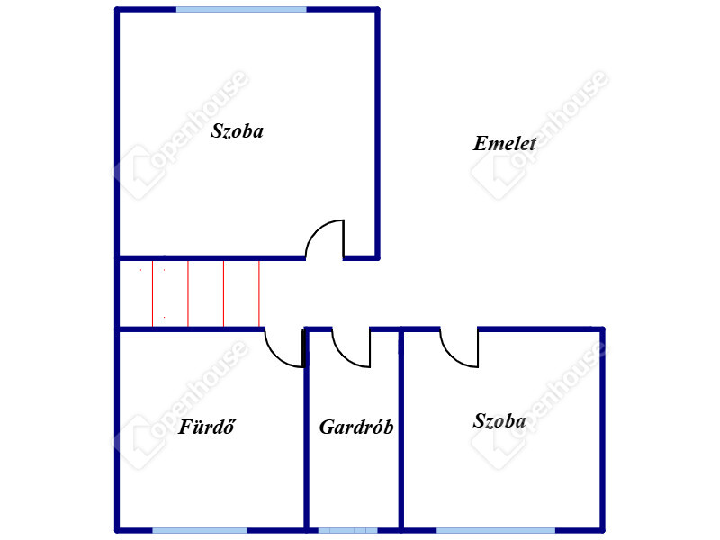 - Az emeleten két különnyíló napfényes szoba, közlekedő, fürdőszoba káddal, zuhanyzóval és a fürdőszobán belül különálló WC-vel.